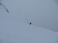 Sehr gute Verhältnisse mit ca. 20cm Pulverschnee.Da es auf der gesamten Tour immer noch leicht schneite, war die Sicht etwas neblig.Daher haben wir das Schlusscouloirs ausgelassen.