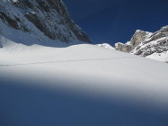 Unterwegs mit Beatrice. Besten Dank der unbekannten Spurerin zur Spillgerte, sowie Mary Leibundgut für die genial angelegte Spur zum Rothorn!