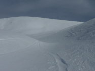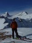 Unten schöner Schnee. Der Gipfel etwas Windgedeckelt. Auf dem Gipfel trotz Sturmwarnung Windstill und sehr warm. Nur zu viert auf dem Gipfel. Dank der wärme hat sich der Winddeckel wunderbar aufgeweicht. Super schöne Abfahrt. Danach Käsbrätel gegessen und Rennen geschaut.