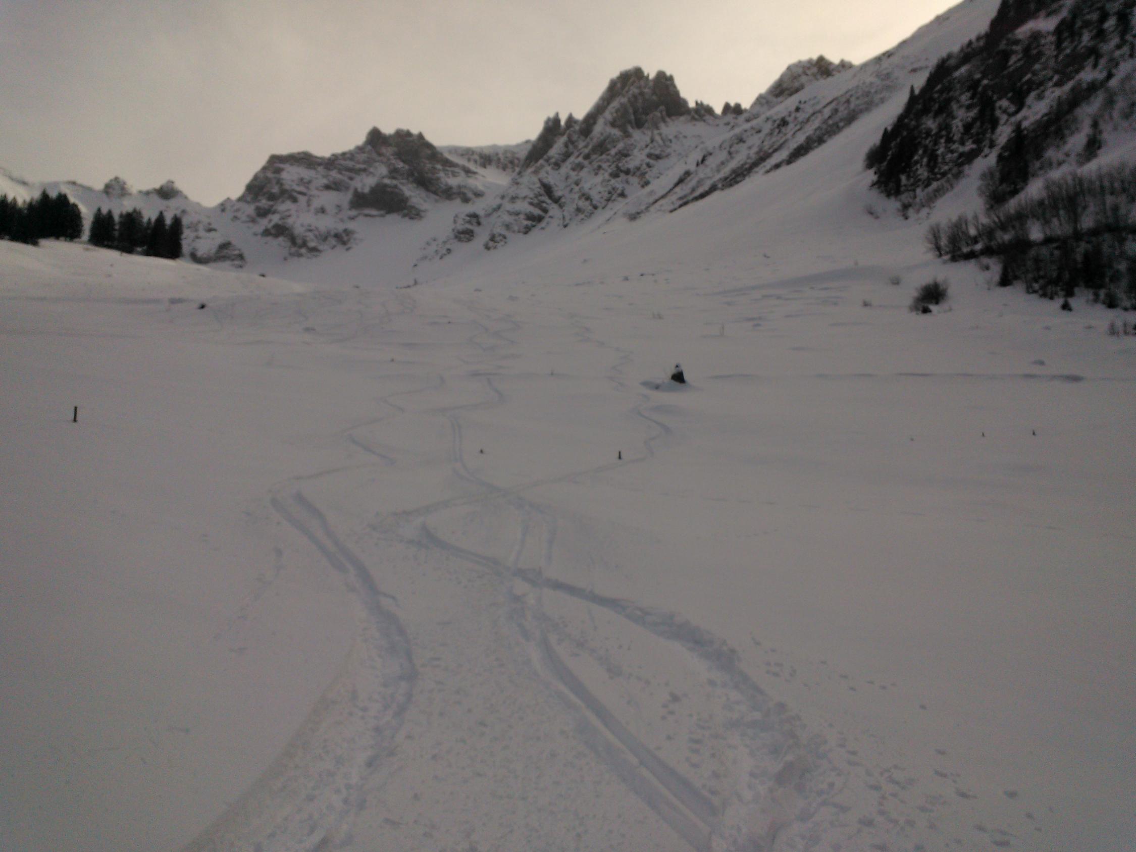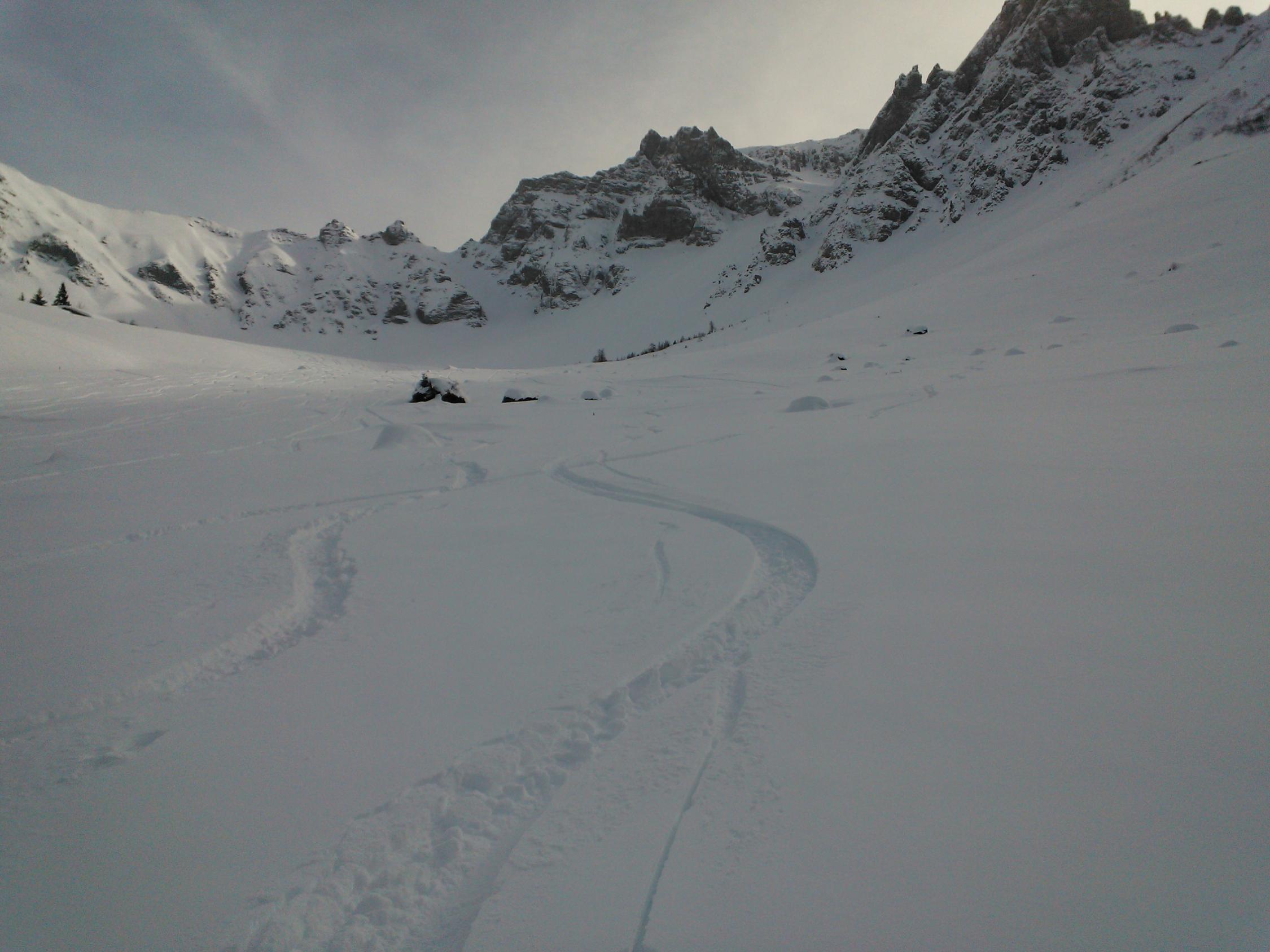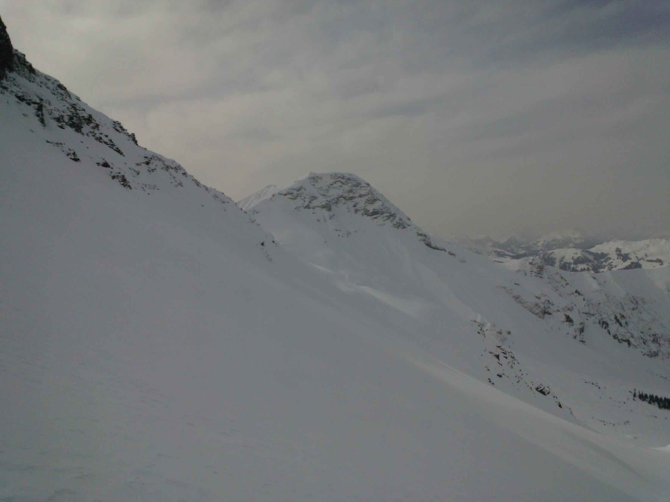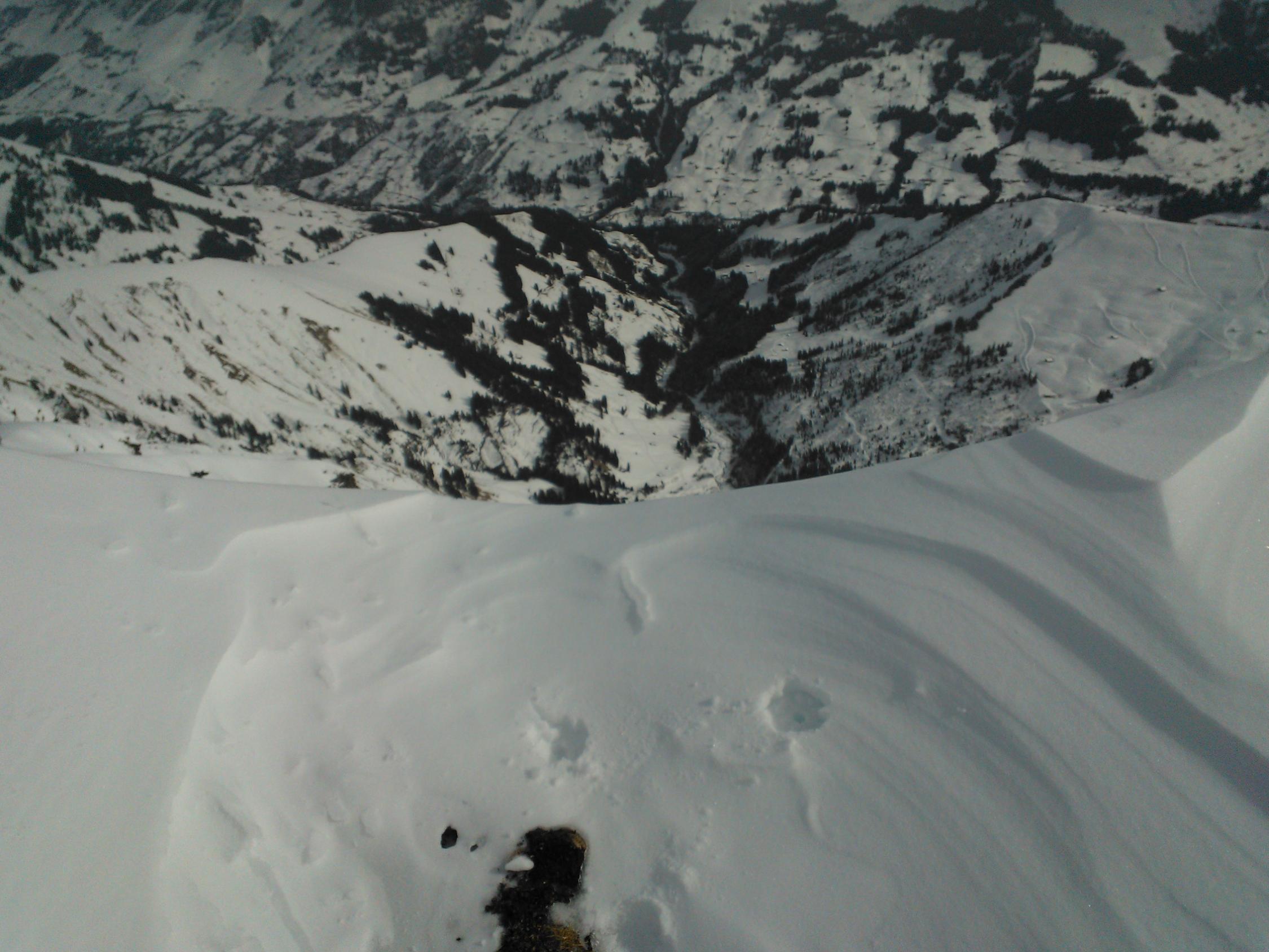 Eigentlich wollte ich meine Wochentour mal ins Rosalaui unternehmen, aber nach der Lektüre des Eintrags von Manfred Hofmann von der Spillgerte von gestern war es klar: Doch wieder ins Diemtigtal, jetzt ist der Moment für eine steilere Tour gekommen! Start bei 0 Grad im Fildrich, Wetter milchig-sonnig, sehr angenehm. Aufstieg bis Steibode problemlos, dann den steilen Hang empor. Er war gespurt (danke), aber mit etwas vielen Spitzkehren, teils Pulver, teils härter von älterem oberflächlichem Schneebrett, ganz oben unterhalb des Sattels heikle Route, Schnee windgepresst und rutschig, und unterhalb waren die Felsen. War kurz froh um Harscheisen. Dann der Gipfelhang wieder einfacher. Die Abfahrt: im Gipfelhang meist toller Pulver, wenig windgepresster. Im Couli ging es ganz oben nur darum, nicht auf die Schnauze zu fallen. Aber DANN immer noch im oberen Teil Übergang zu HAMMERPULVER, etwa 30cm bis 50cm, bei dieser Steilheit, das war wie Schweben... Wundervoll, und es blieb nach dem Steilhang im Steibode immer noch super bis ganz unten! Geniale Tour...