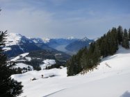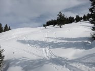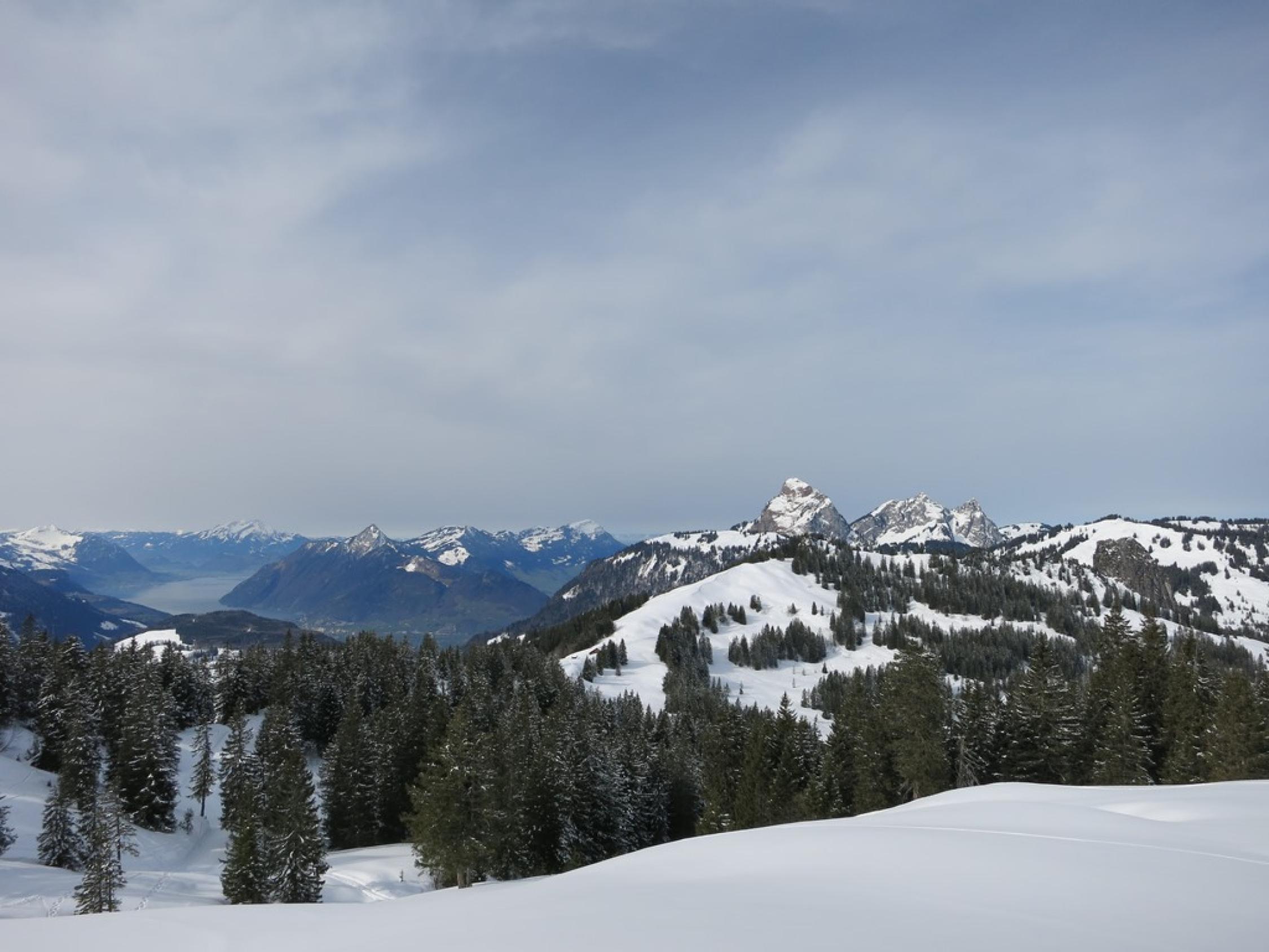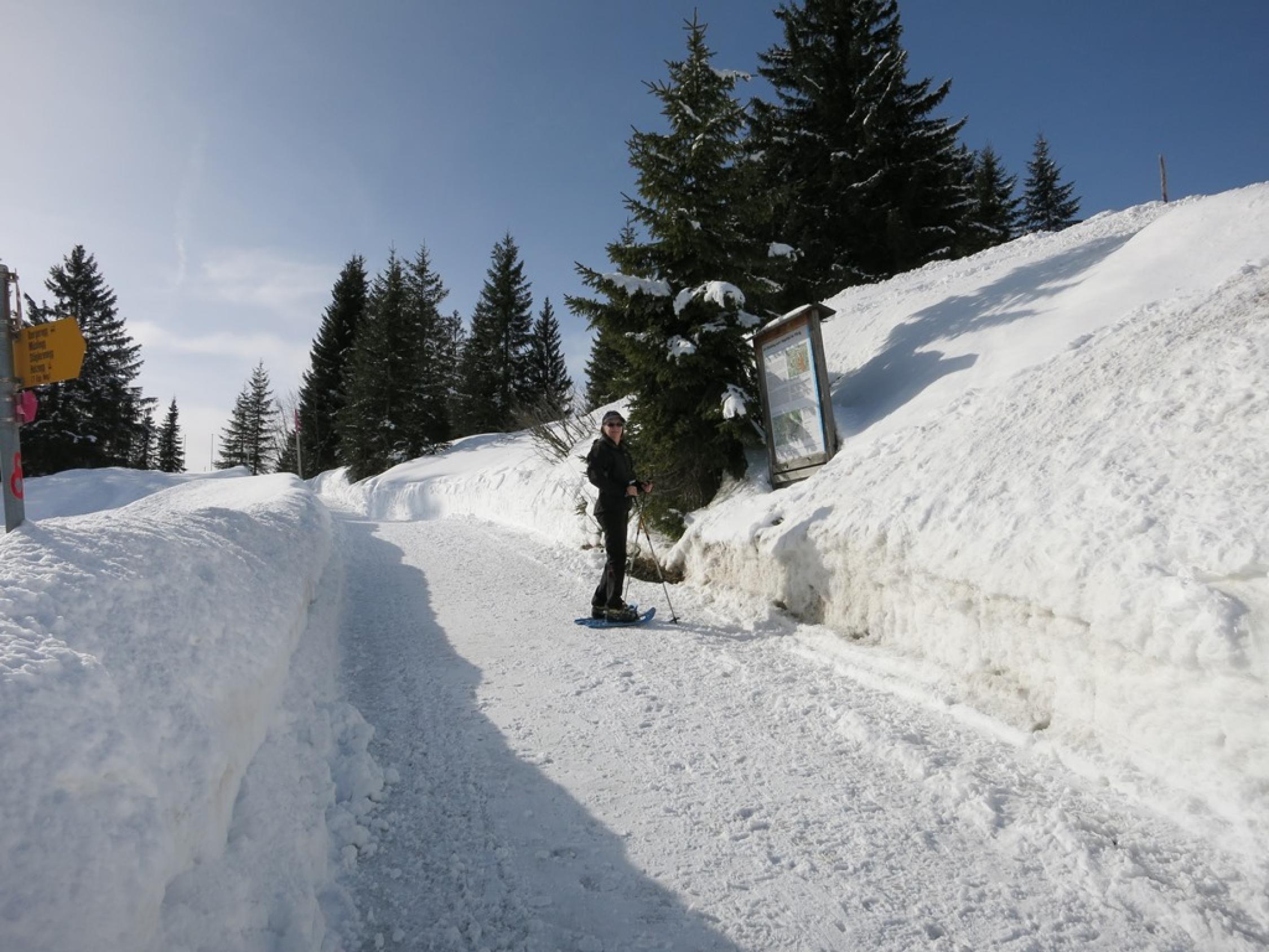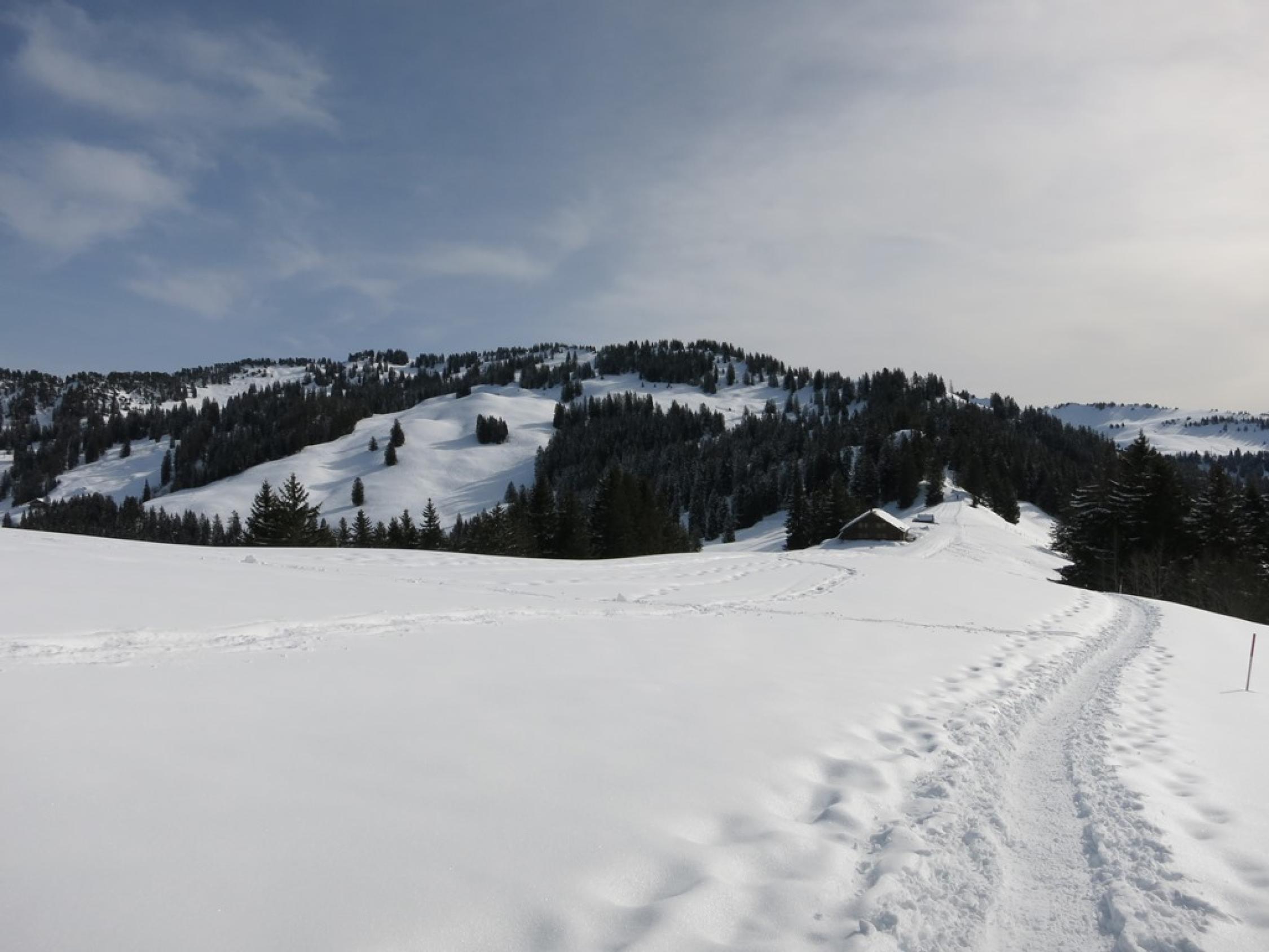 Bis Sternenegg als Schneeschuhroute ausgeschildert, dadurch festgetretenes Trassee vorgefunden. Nord-West Hang zum P.1756 hatte gute Abstiegsspur, die sich gut für Aufstieg eignete. Daneben schöner Pulver, so dass im Abstieg viel Platz war für eigene Spur.