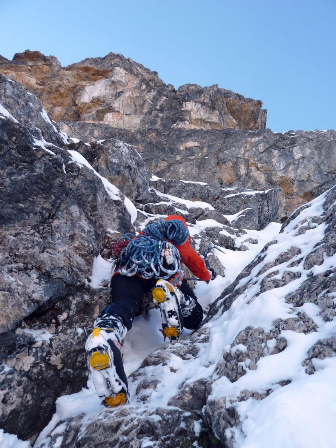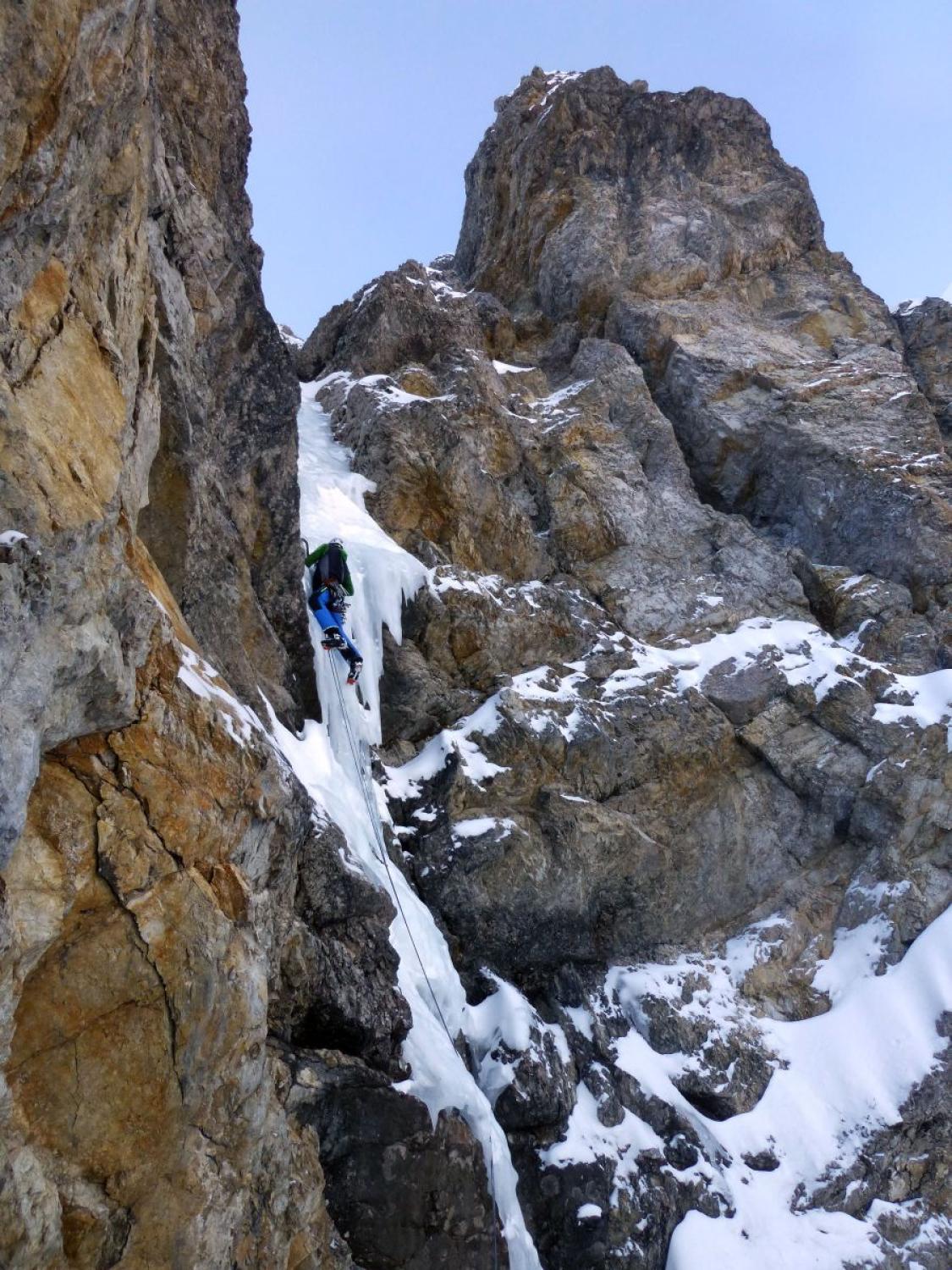 Trotz allgemein warmer Temperaturen erstaunlich brauchbare Nordwandverhältnisse am Geierkopf.