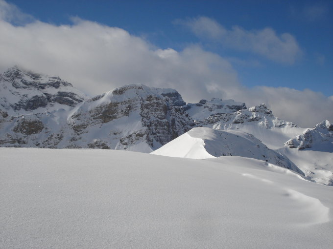 Heute super Verhältnisse,letzter Schneefall eimal mit wenig Windverfrachtung, Pulverschnee 10-50cm vom feinsten. Beim Aufstieg zum Sangigrad Gipfelhang viel Spurarbeit gefragt abeer wurde mit einer tollen Abfahrt belohnt.Auf dem Gipfel Sonnig und Windstill.