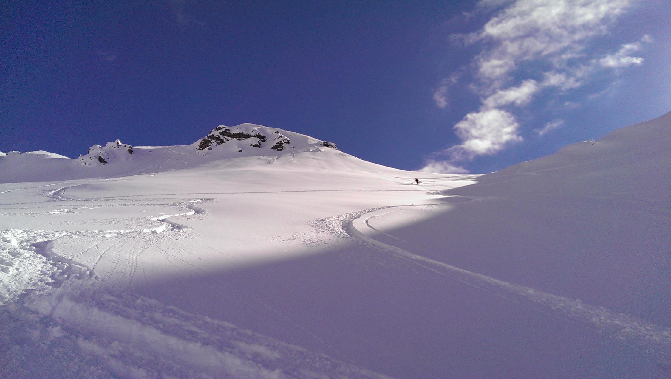 Letzte Lawinenabgänge südseitig von vorgestern sind wieder schön überschneit und gut zu befahren