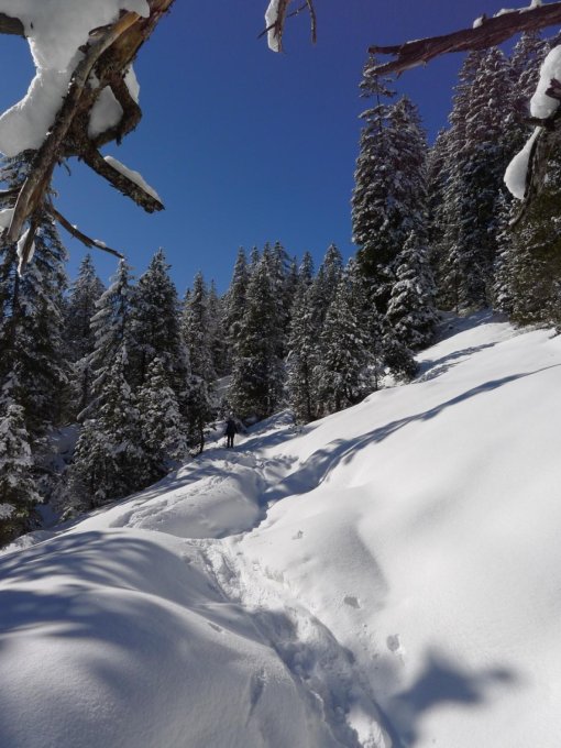 Unterdurchschnittliche Schneehöhe. In östlichen Expositionen tiefe Triebscheneeablagerungen.