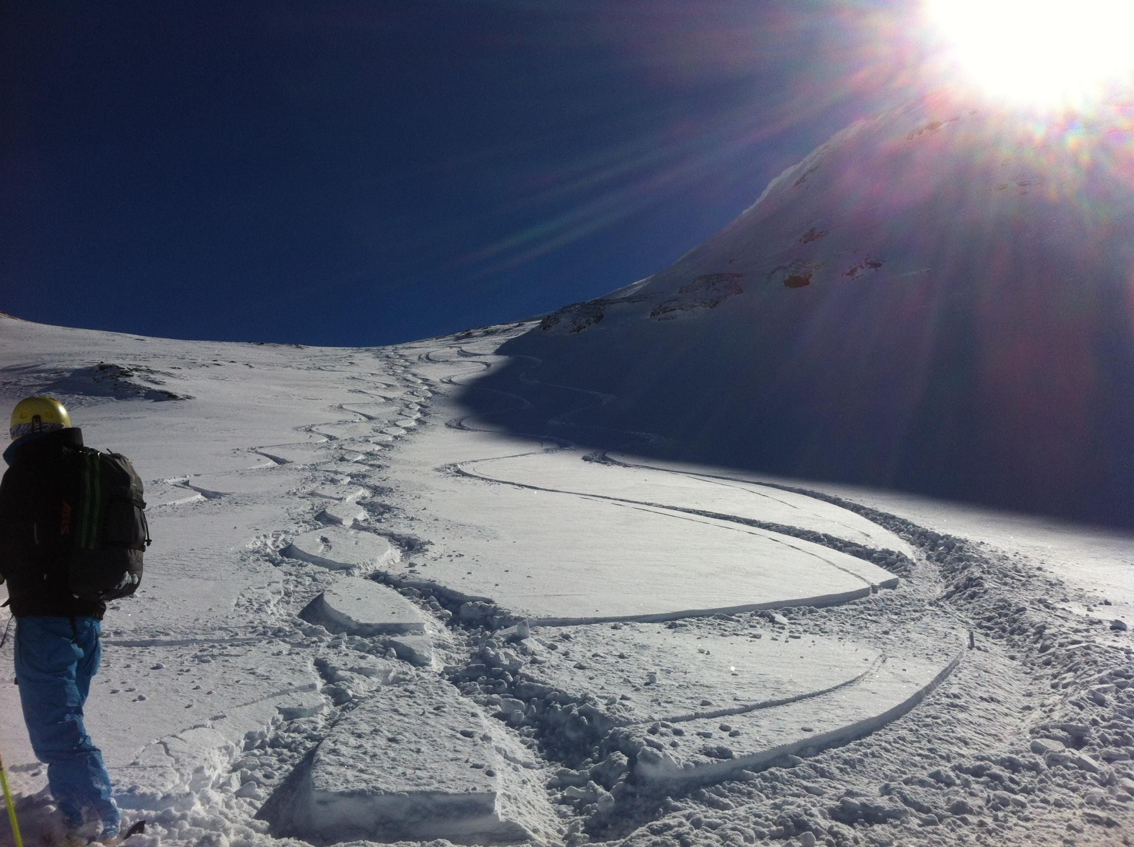 Sonnseitig haben sich die ca. 20 cm Neuschnee der letzten 3 Tage noch nicht gebunden