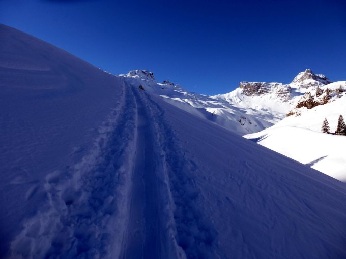 Ich denk mal, bessere Verhältnisse als gestern kann man kaum haben. Oben war ca. 50-60cm feinster Pulverschnee, in dern untern Hälfte etwa 20-30cm Neuschnee. Es war wolkenlos und selbst am Gipfel absolut windstill.