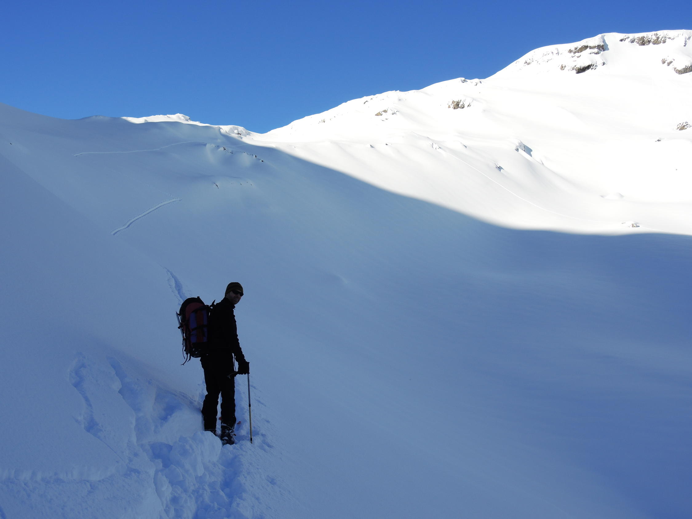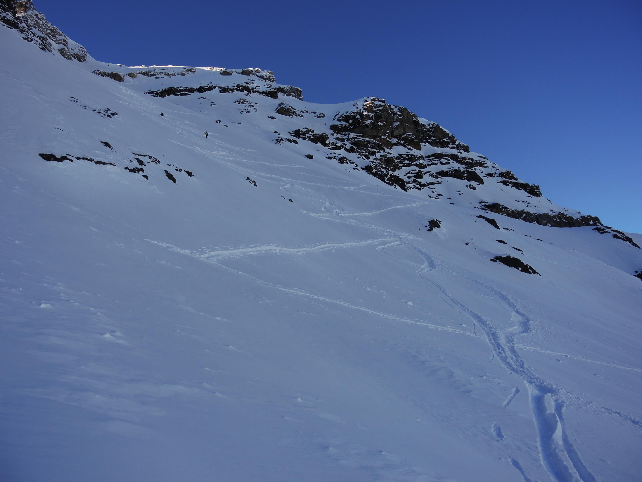 Im unteren Bereich bis Panixerpass unverblasener Neuschnee, ca. 20cm. Unterhalb Ober Stafel hat es kaum Schneeunterlage und Steinkontakt ist wahrscheinlich. Oberhalb noch etwas mehr Schnee, leicht verblasen. Im Gipfelbereich eher hart und windverpresst, sehr tief.