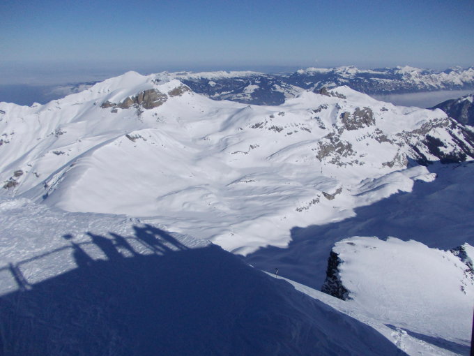 Ausgangspunkt ist der James Bond Berg das Schilthorn. Schon beim Start sehen wir eins der imposantesten Gebirgs-Panoramen. Im Süden die Berner Riesen, nach Norden geht der Blick in den Jura, die Vogesen und bis zum Schwarzwald.