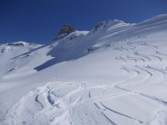 Prima Verhältnisse. In den Nordhängen immer noch bester Pulverschnee.