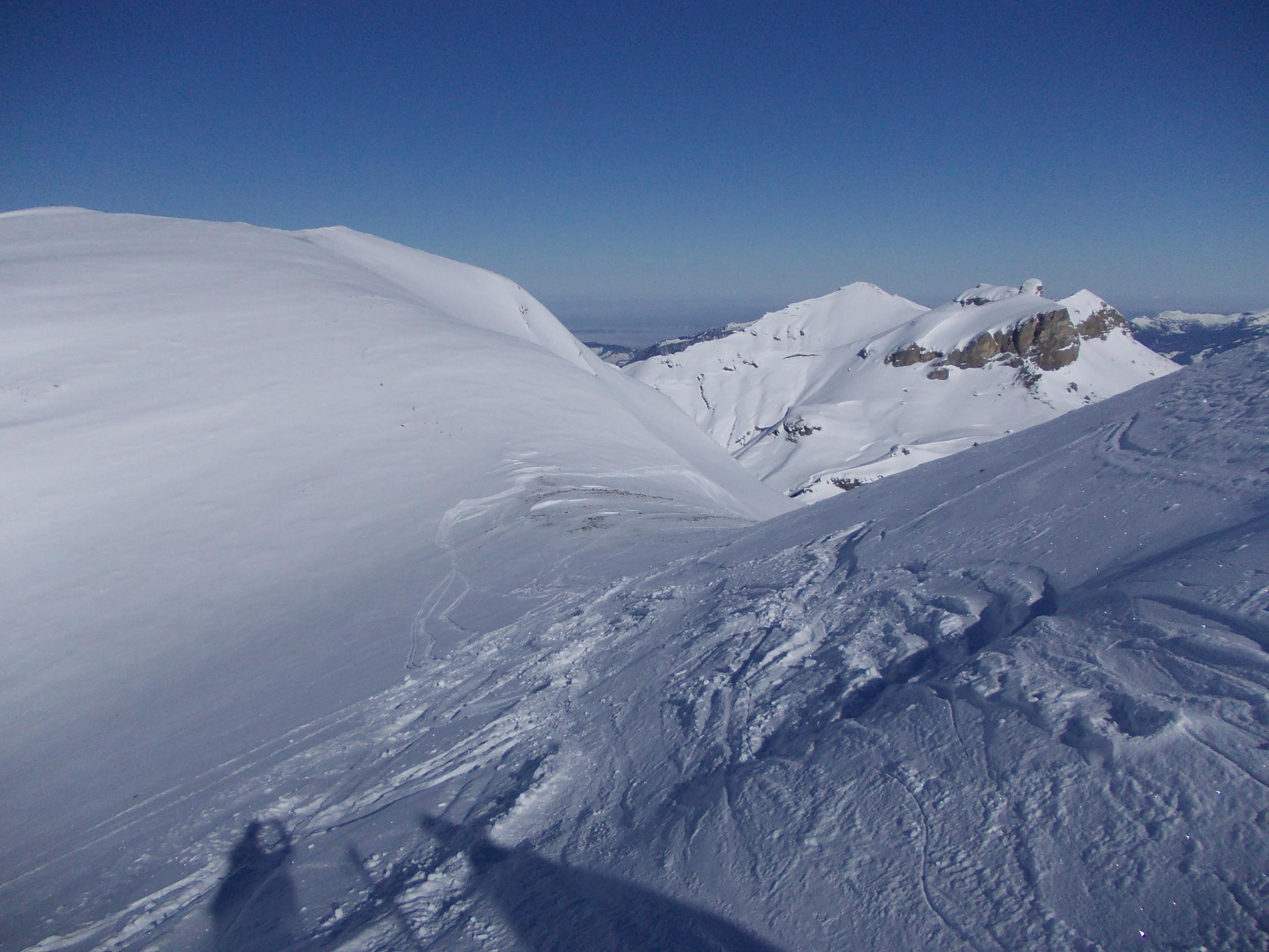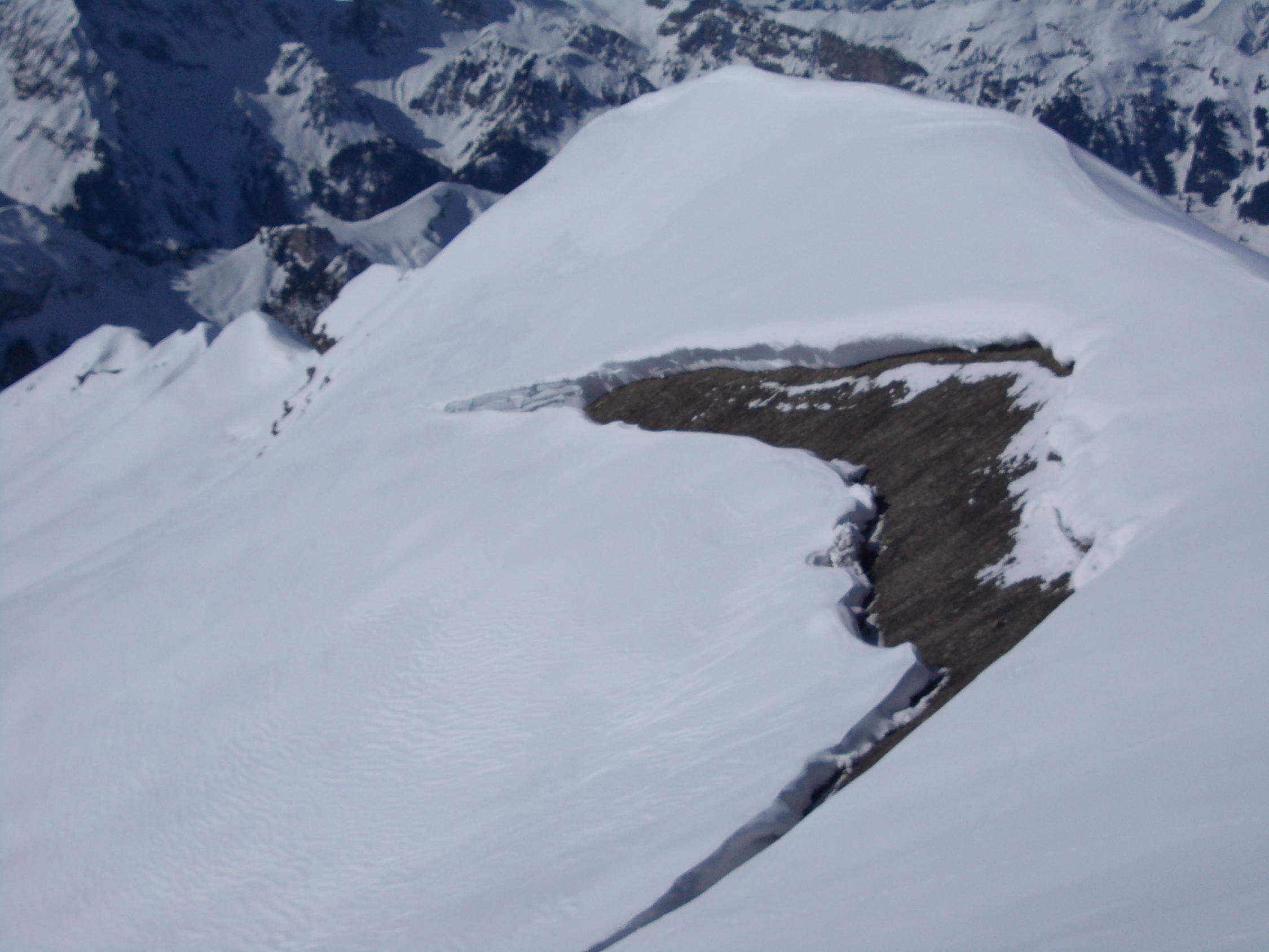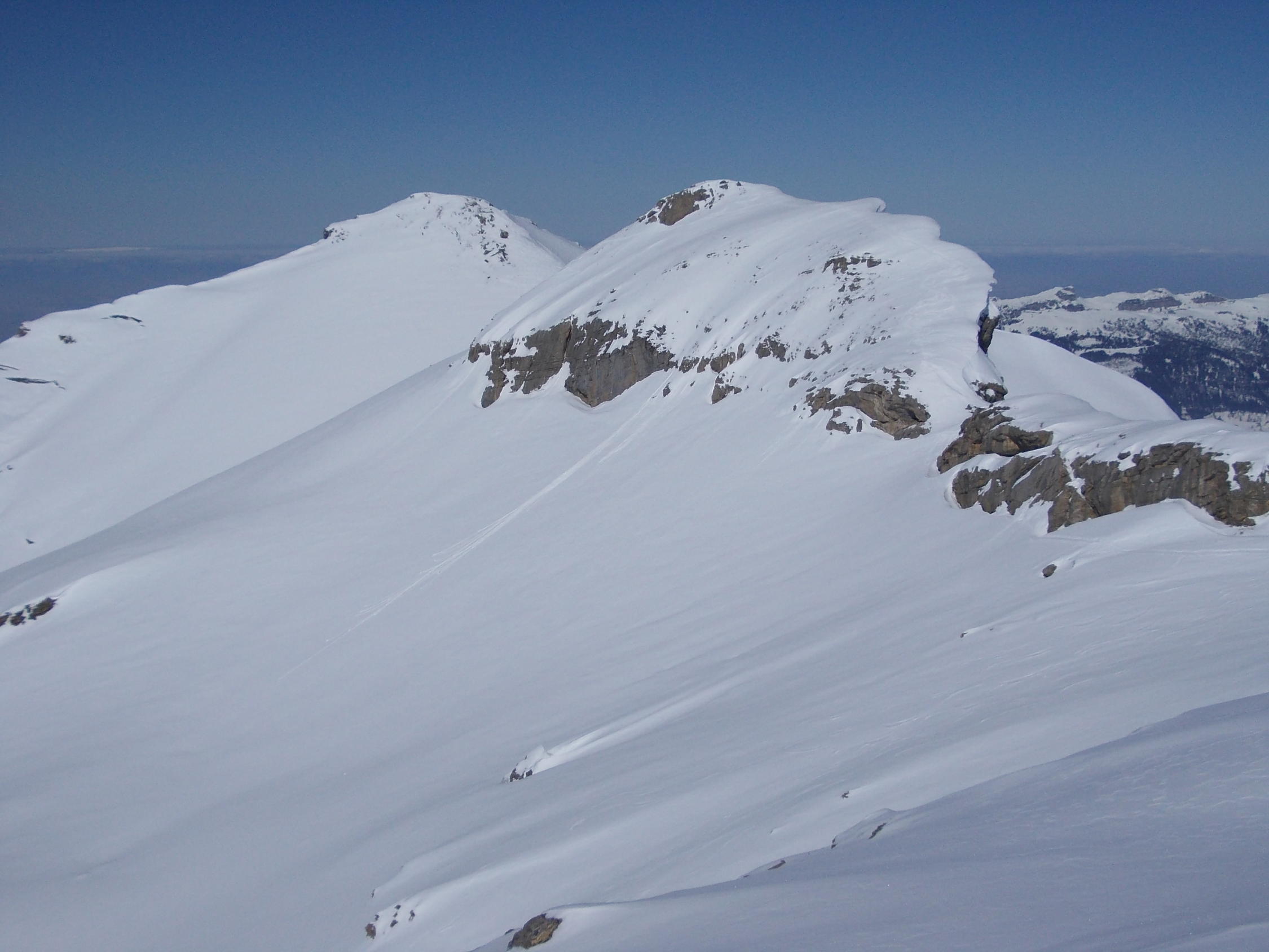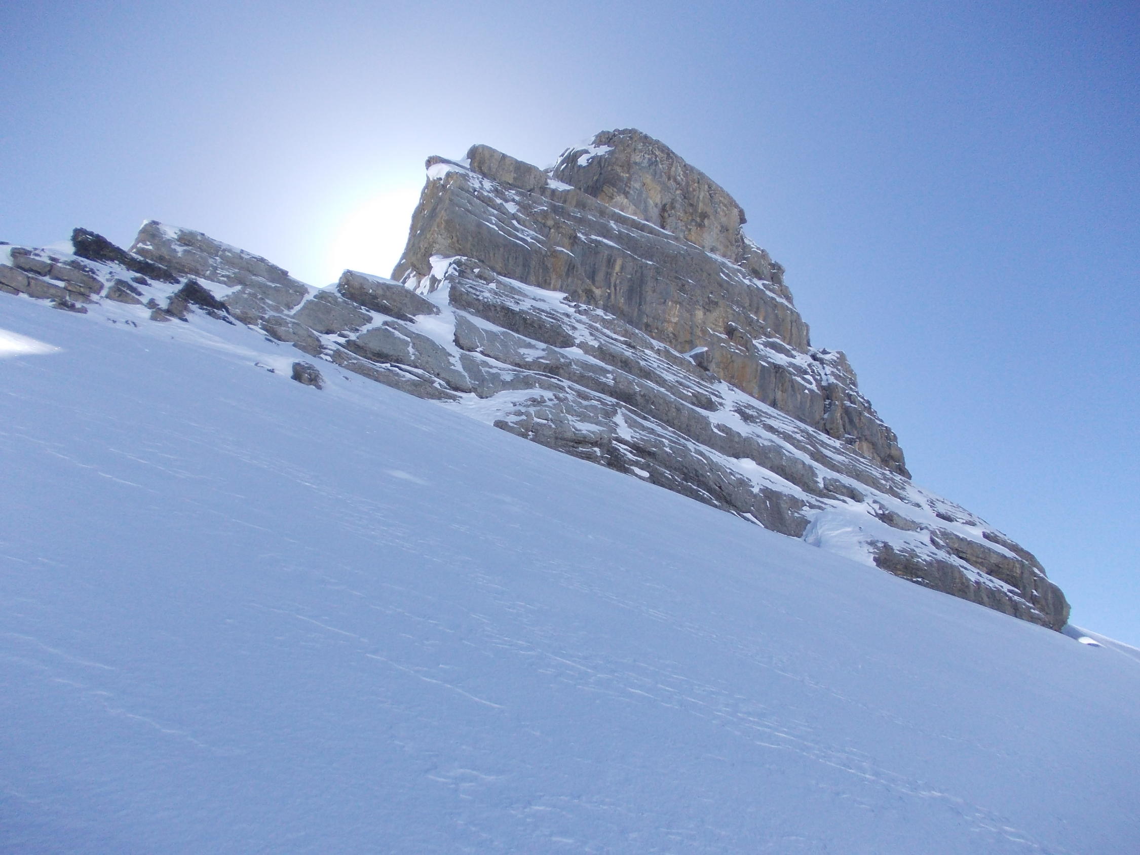 In den Süd- und Westhängen der Dreispitzgruppe einige Grundlawinen gesehen. Es hat sehr viele Fischmäuler in den Südhängen.