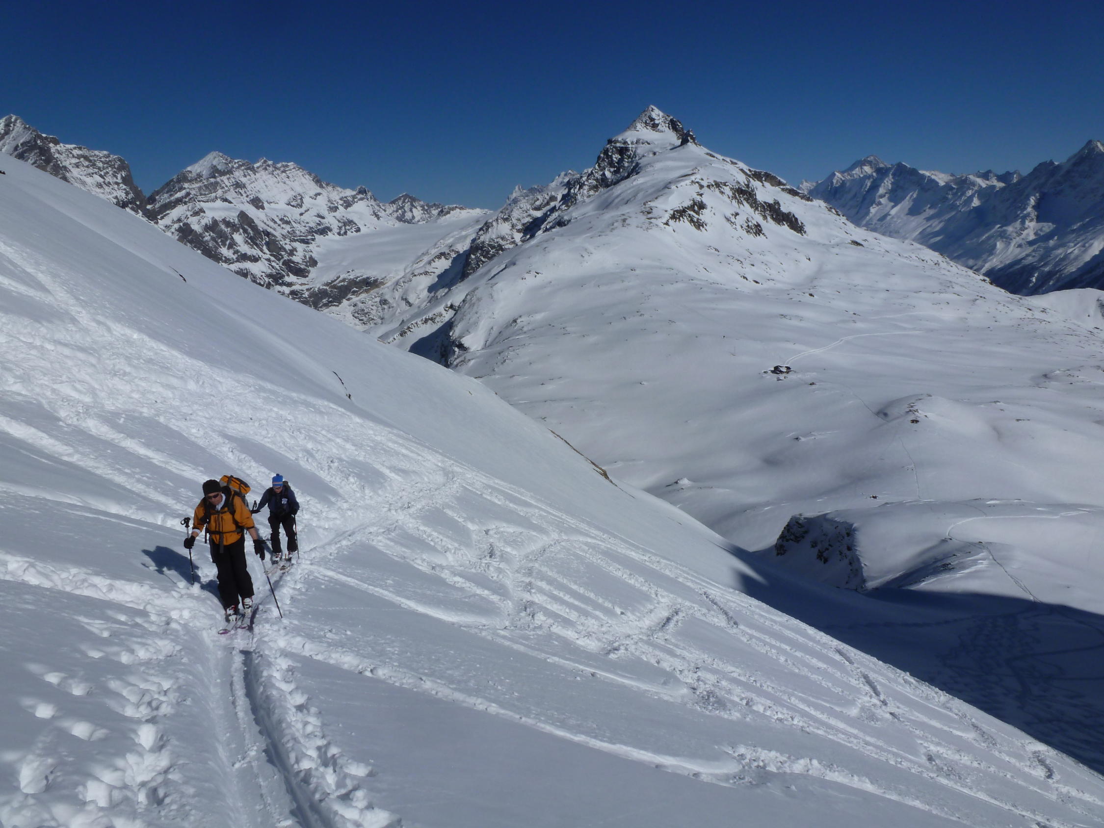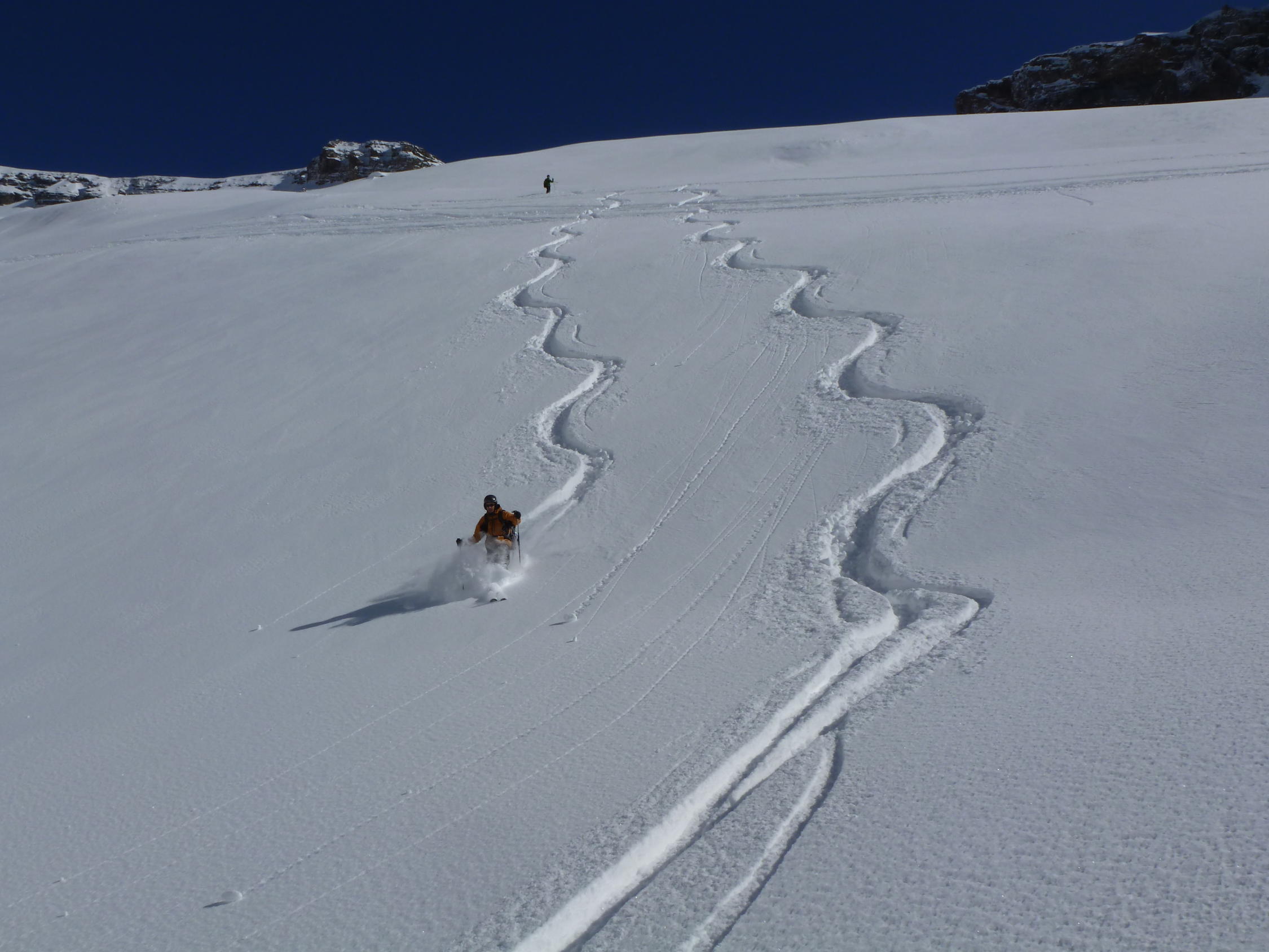 Schnee: alles sehr gut eingeschneit, sogar Abfahrt in den Lötschenpass = Pulver, ab Gitzifurggu 40-50cm Pulverschnee(siehe Fotos),