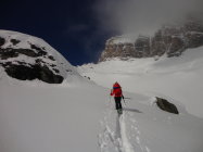 Kleinere oberflächliche Rutsche des letzten Neuschnees, sonst im Einzugsbereich der Route keine.
