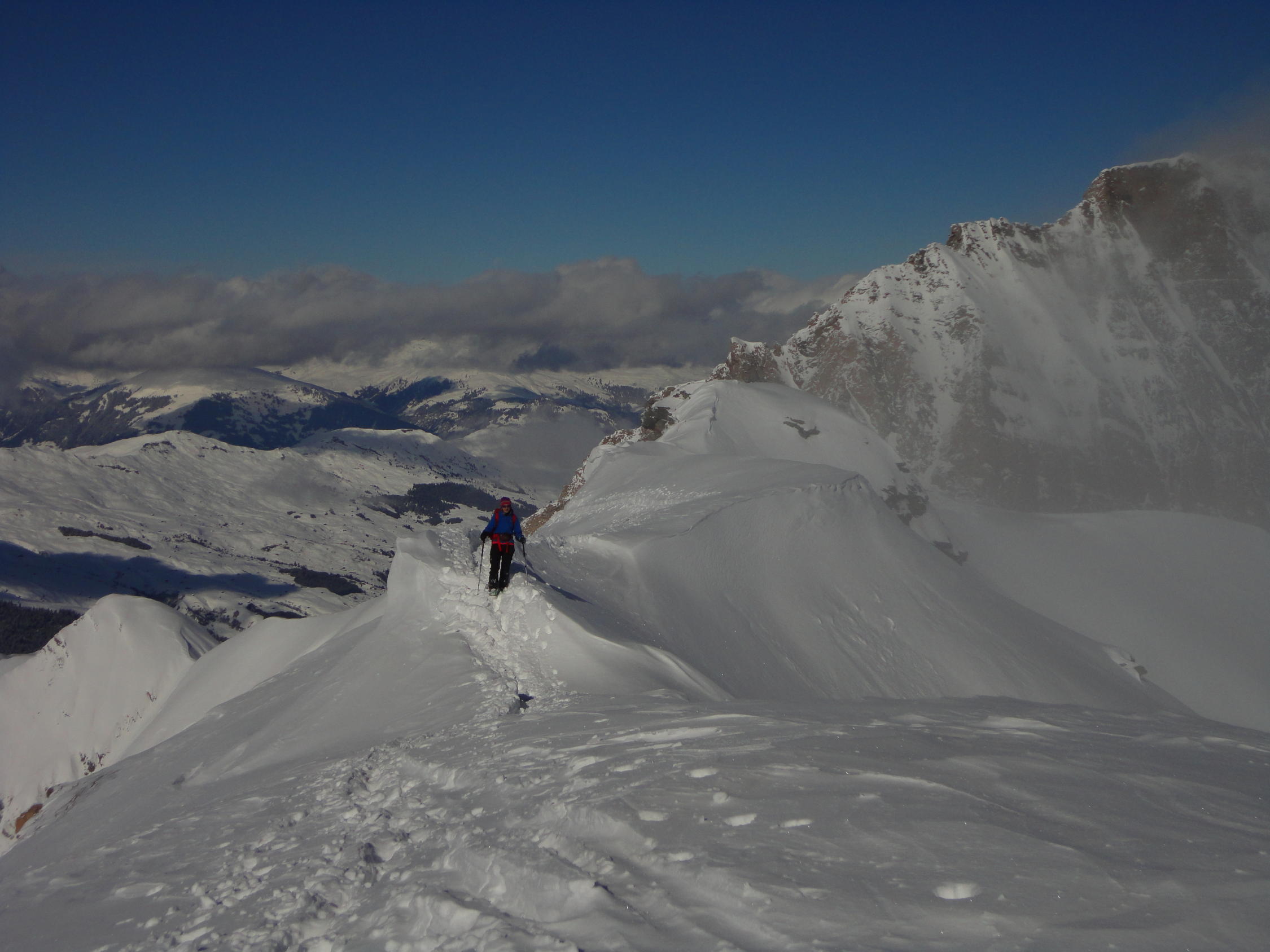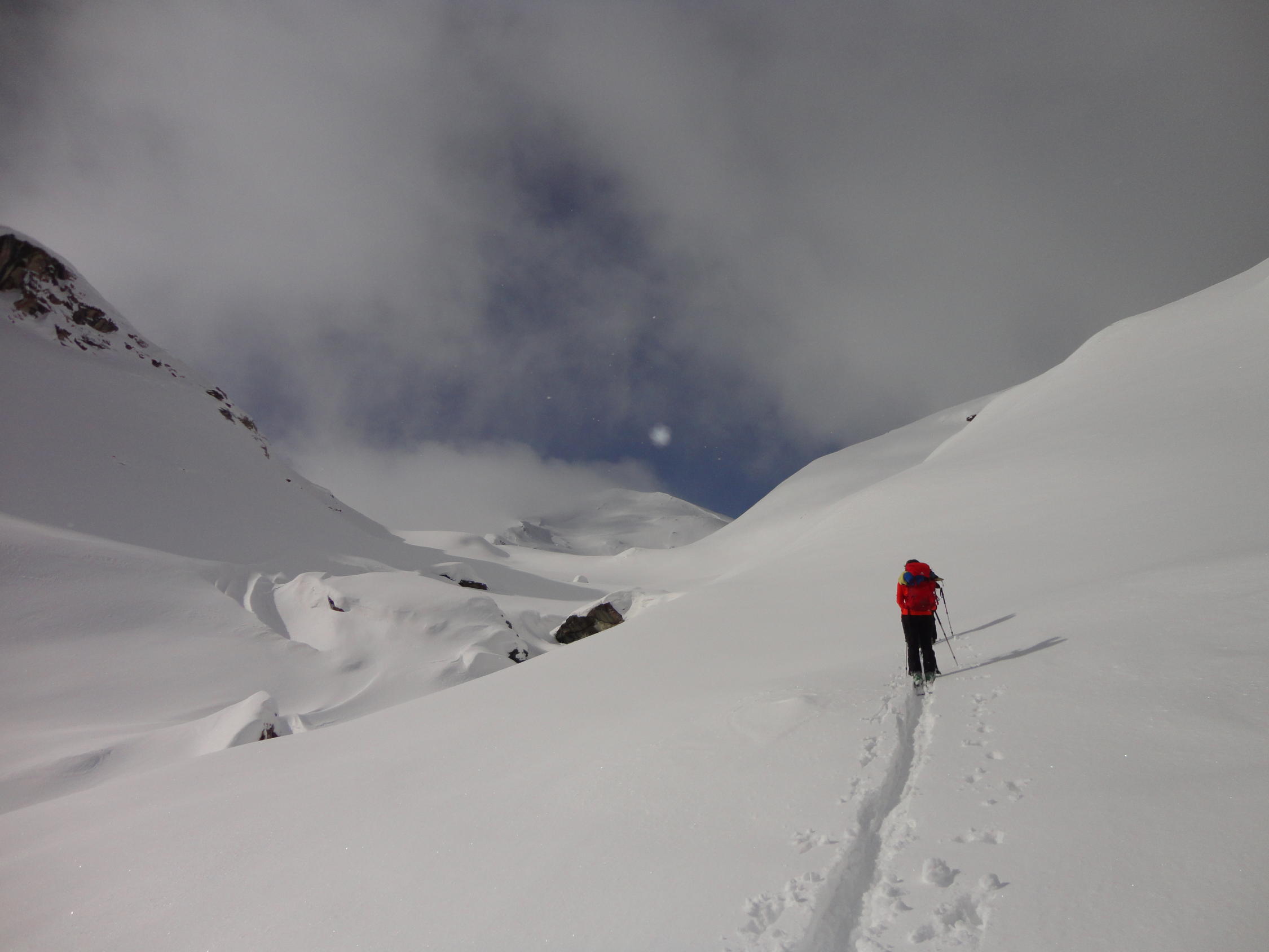 Abwechslungsreiche Tour, durch Spurarbeit und wechselhafte Schnee- und Sichtverhältnisse etwas anspruchsvoller als sonst.