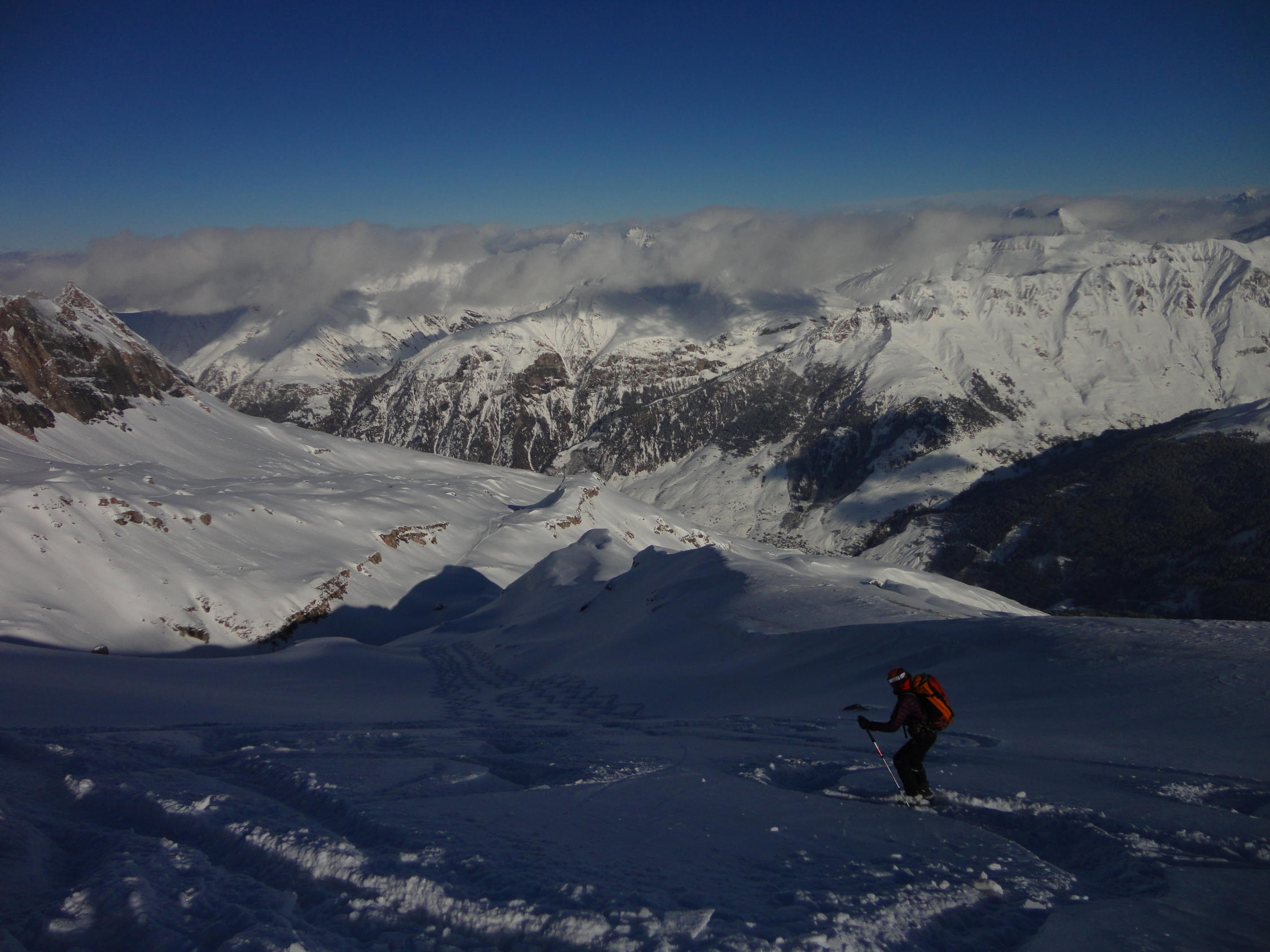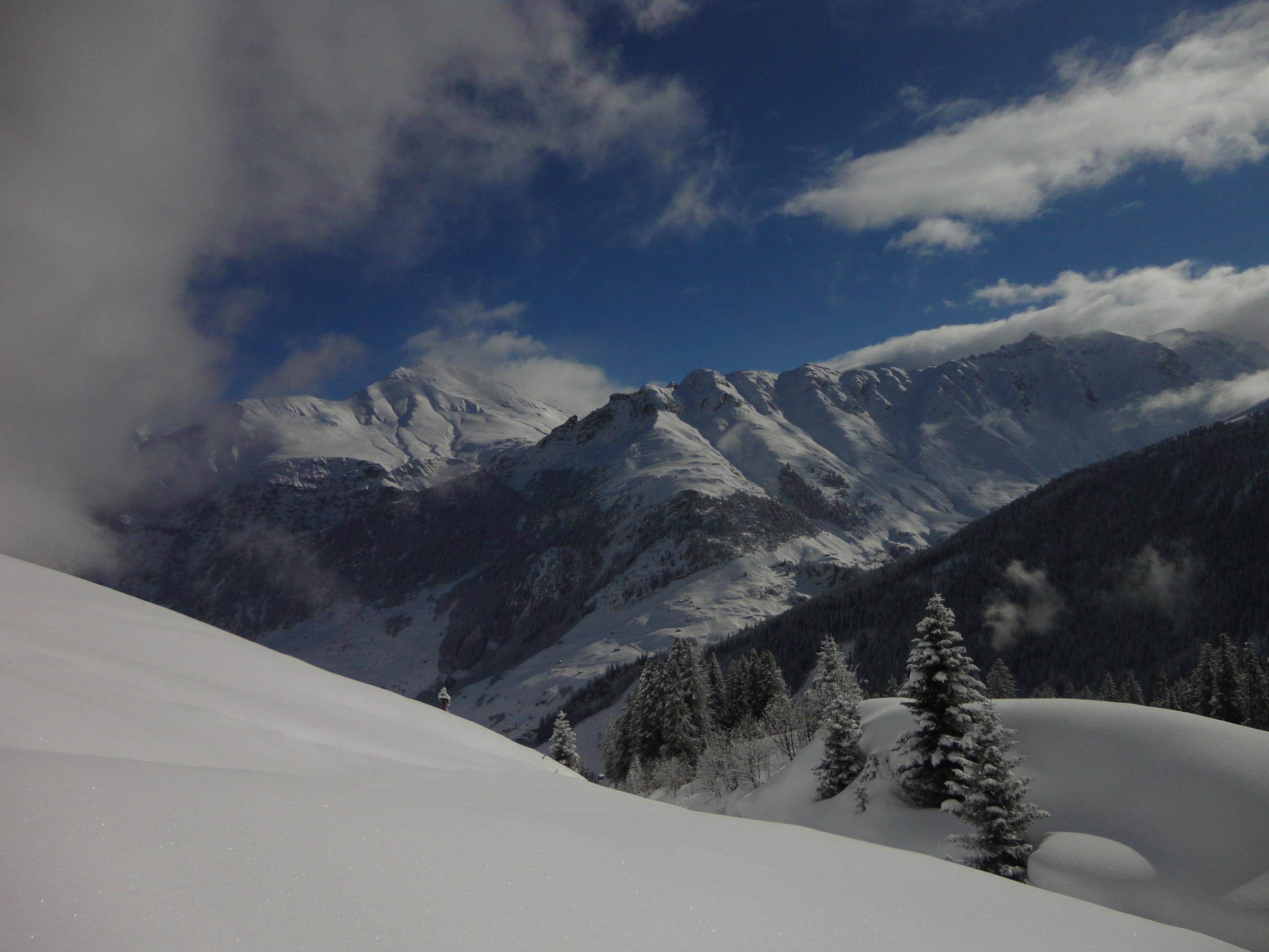 Gute Schneelage bis in´s Tal. Vom Grat bis unterhalb der Bleschaturra schöner Pulver, die Südosthänge runter nach Gadastatt leicht deckelig, ab dort gepflegte Pistenabfahrt.