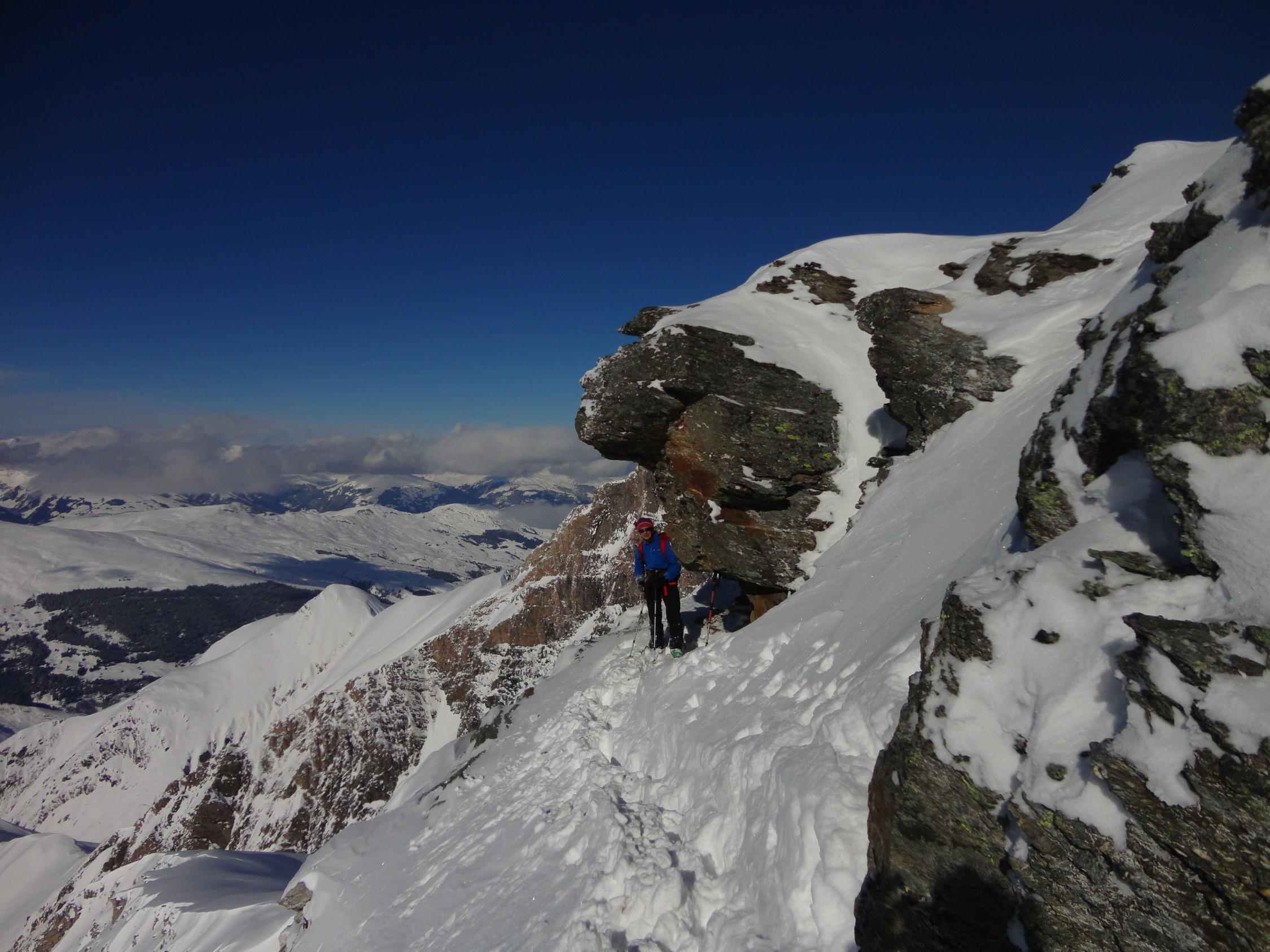 Nettes windgeschütztes Plätzchen am Skidepot für die Gipfelbrotzeit.