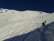 Locker- bzw. Pappschneerutsche in den Sonnenhängen. (abseits der Tour, im Steilgelände evtl. Absturzgefahr)
