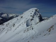 Dank der Skipiste im unteren Bereich der Tour kann vom Parkplatz aus mit Ski losgegangen werden und auch dorthin abgefahren werden. Im Nordkar liegt ausreichend Schnee, welcher von den Vortagen jedoch doch recht zerfahren war. In den oberen südseitigen Hängen ab dem Joch liegt gerade noch ausreichend Schnee um mit Ski vom Gipfel ab zu fahren - weniger sollte es aber nicht mehr werden.