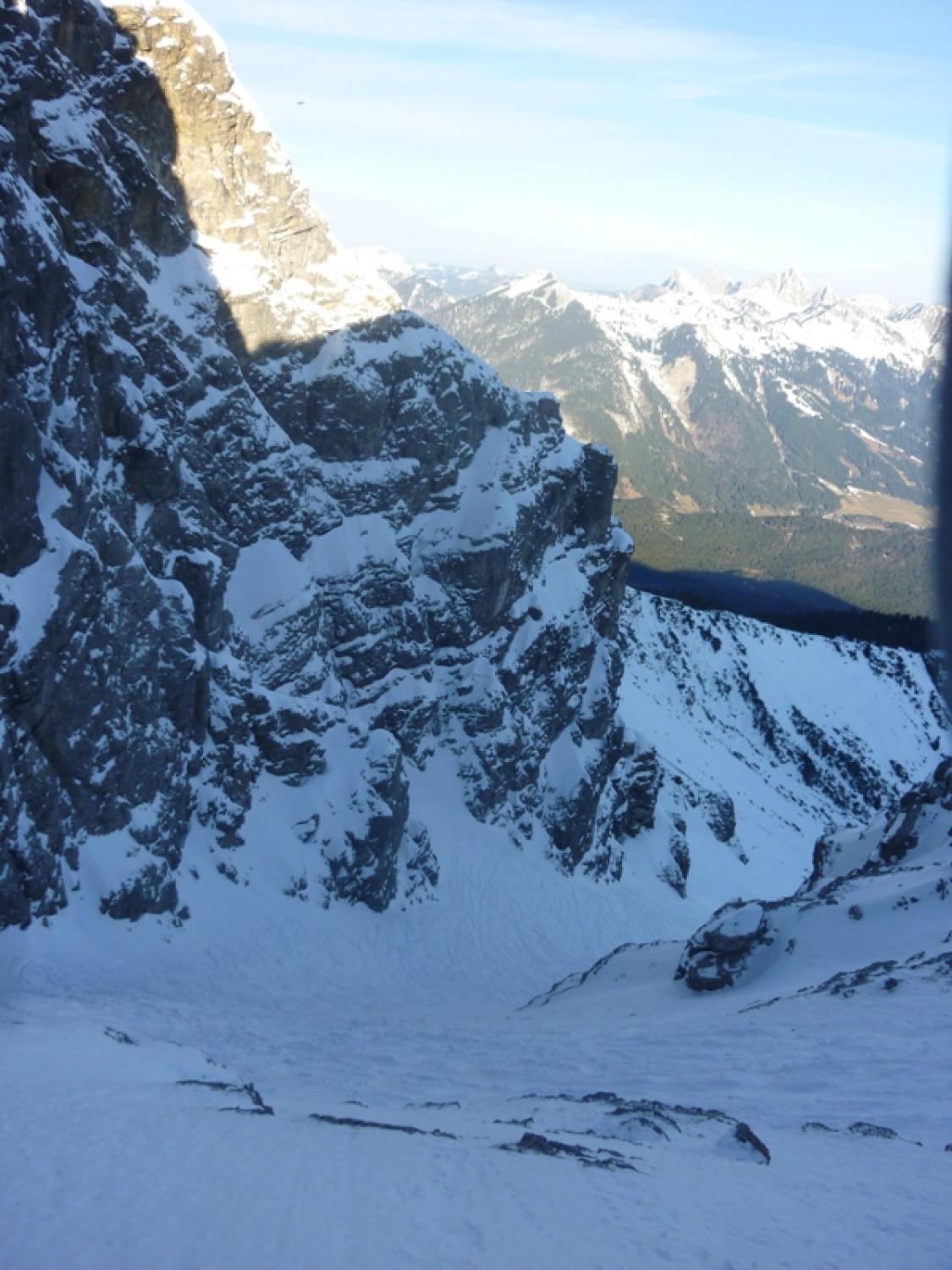 Dem oberen Südhang würden ein wenig Schnee nicht schaden. Ansonsten wird die Tour von der Schneelage im Nordkar sicherlich noch länger machbar bleiben.