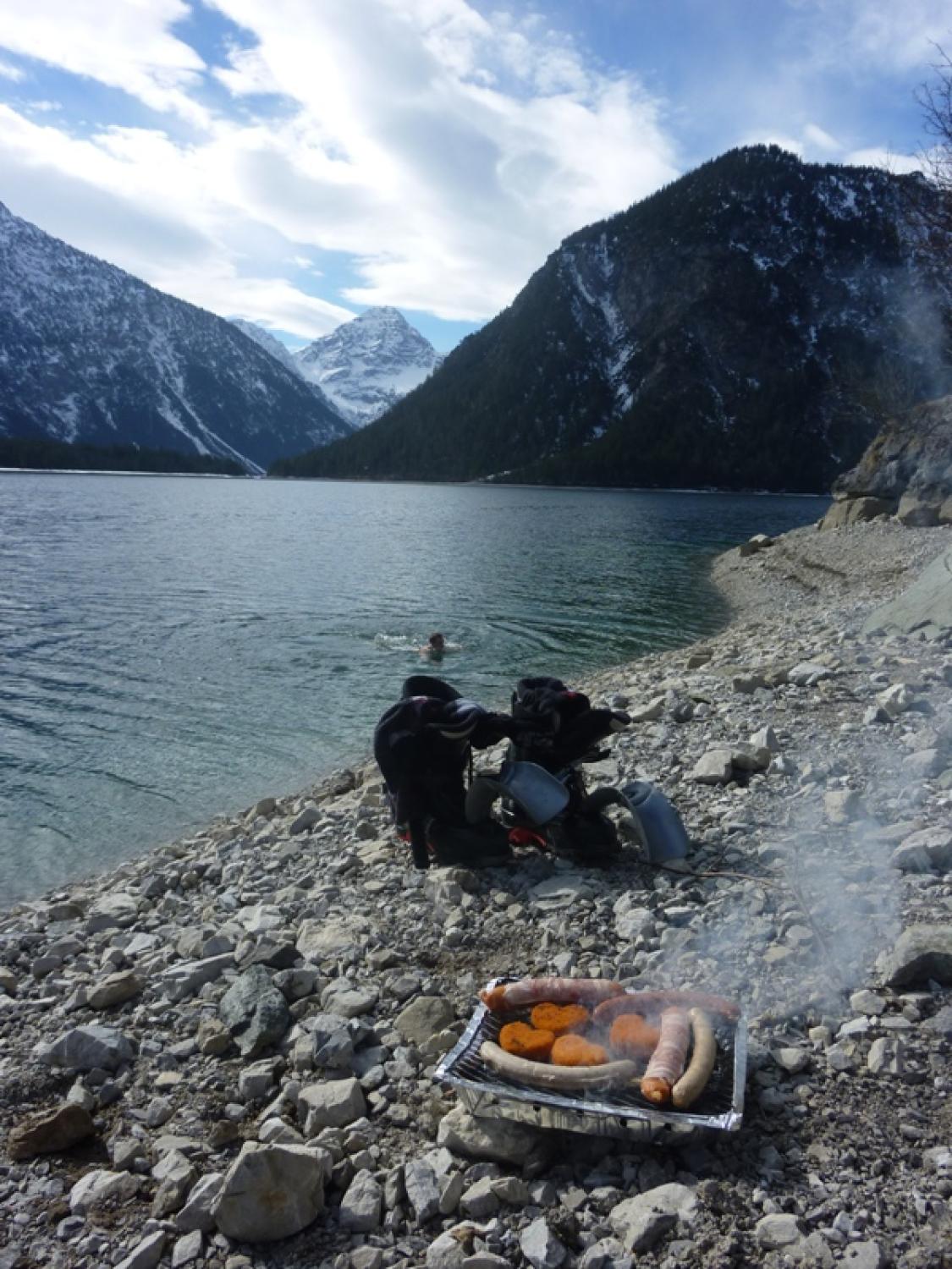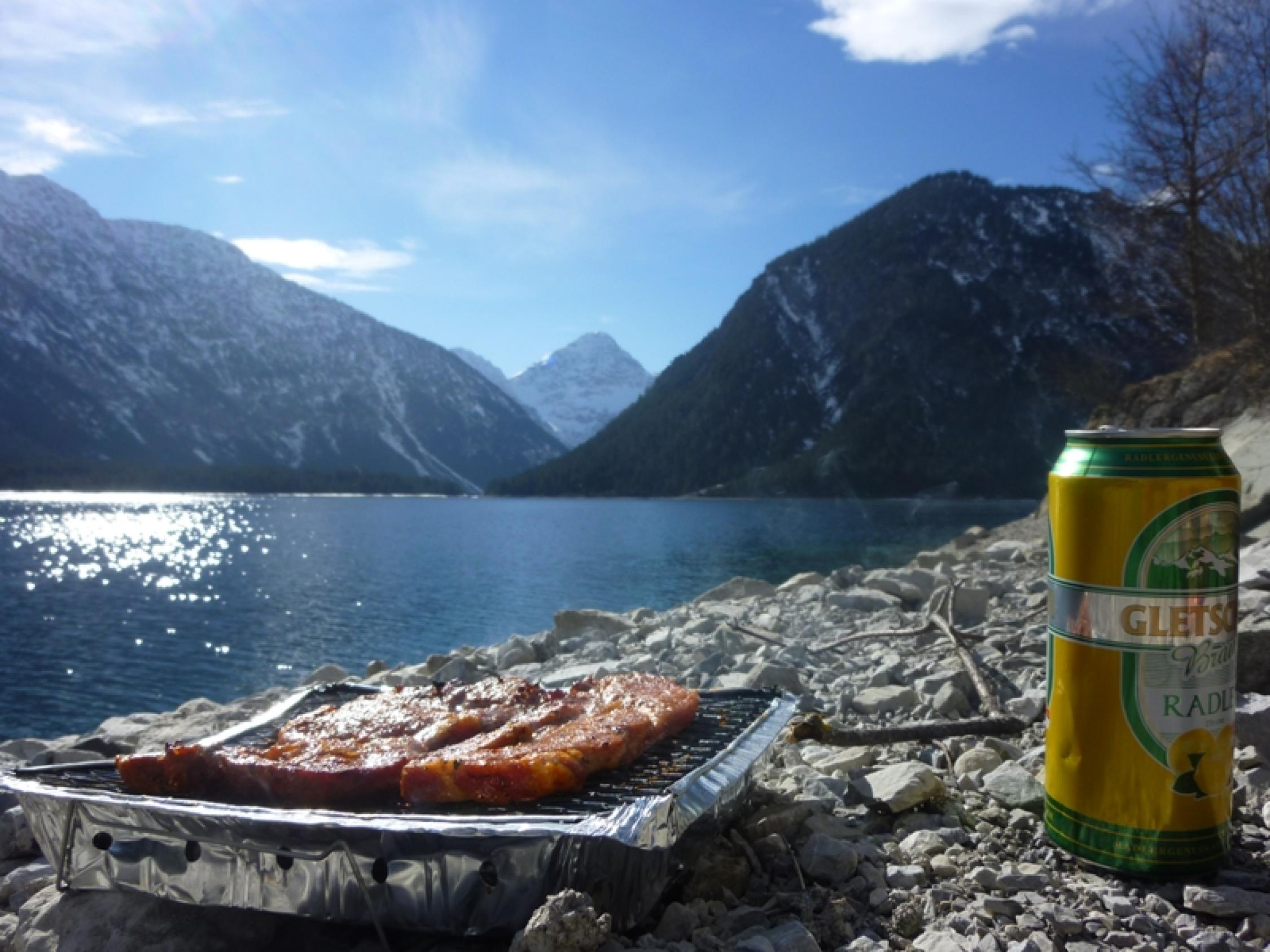 Nachdem wir uns in Reutte erfolgreich einen Grill samt Grillgut besorgt hatten, sind wir zum Mittagsbarbecue zum Plansee hochgefahren. Die Grillbedingungen waren Dank der Frühlingstemperaturen sehr gut. Beim Erfrischungsbad mussten wir dann jedoch feststellen, dass die Wassertemperatur für ausgedehnte Schwimm-Touren überraschender weiße noch nicht ausreichend ist ;).