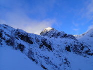 Gut. Wenige Zentimeter Neuschnee. Am Gipfelhang und bei Kartigel Pulver. Im Fussaufstieg guter Trittschnee. Steigeisen evtl. nützlich.