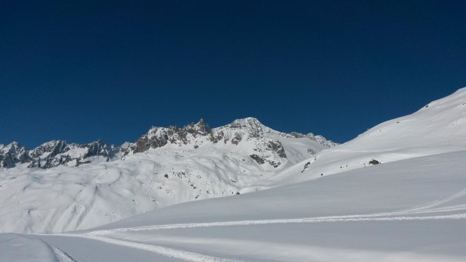 Sehr gute Verhältnisse. Schnee erst ab ca. 2600m ein bisschen verdichtet. Unterhalb 2300m in südlicher Hangexposition Schnee durchgenässt und schwerer, ostseitig noch nicht verdichtet und gut fahrbar.