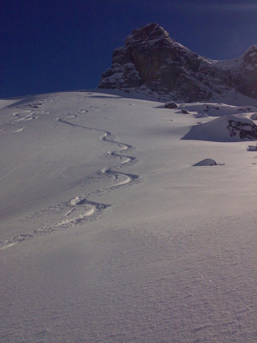Top Verhältnisse ab 10:30 stahlblauer Himmel. Über Nacht sind ca. 20 cm frischer Pulverschnee gefallen. Absolute Hammerabfahrt.