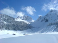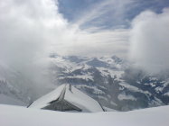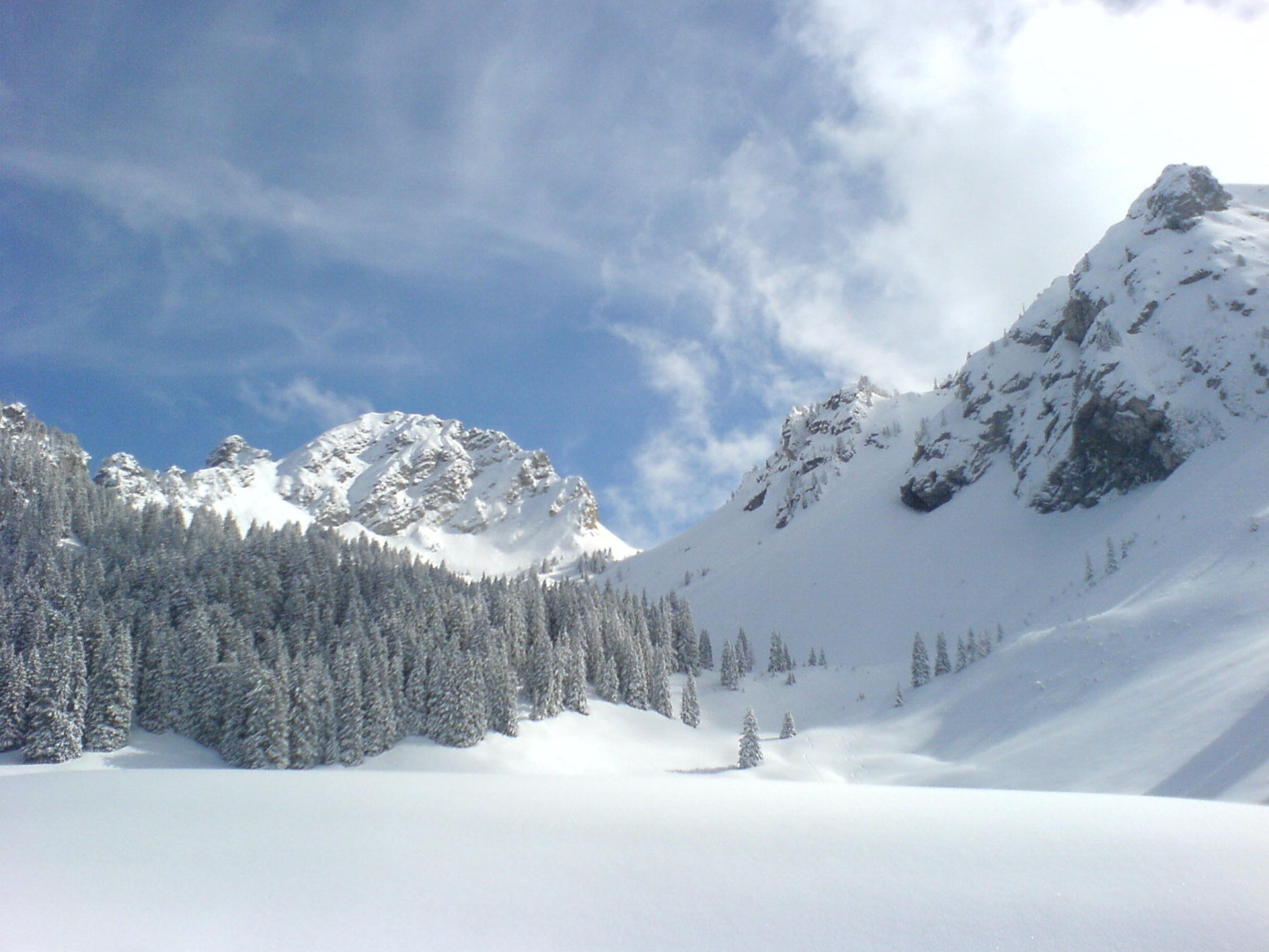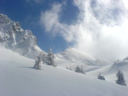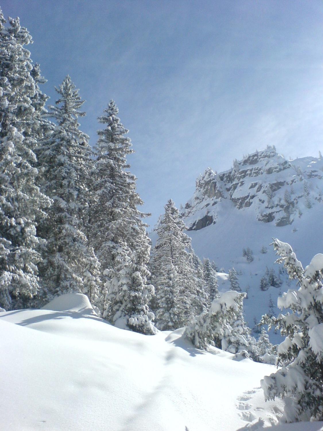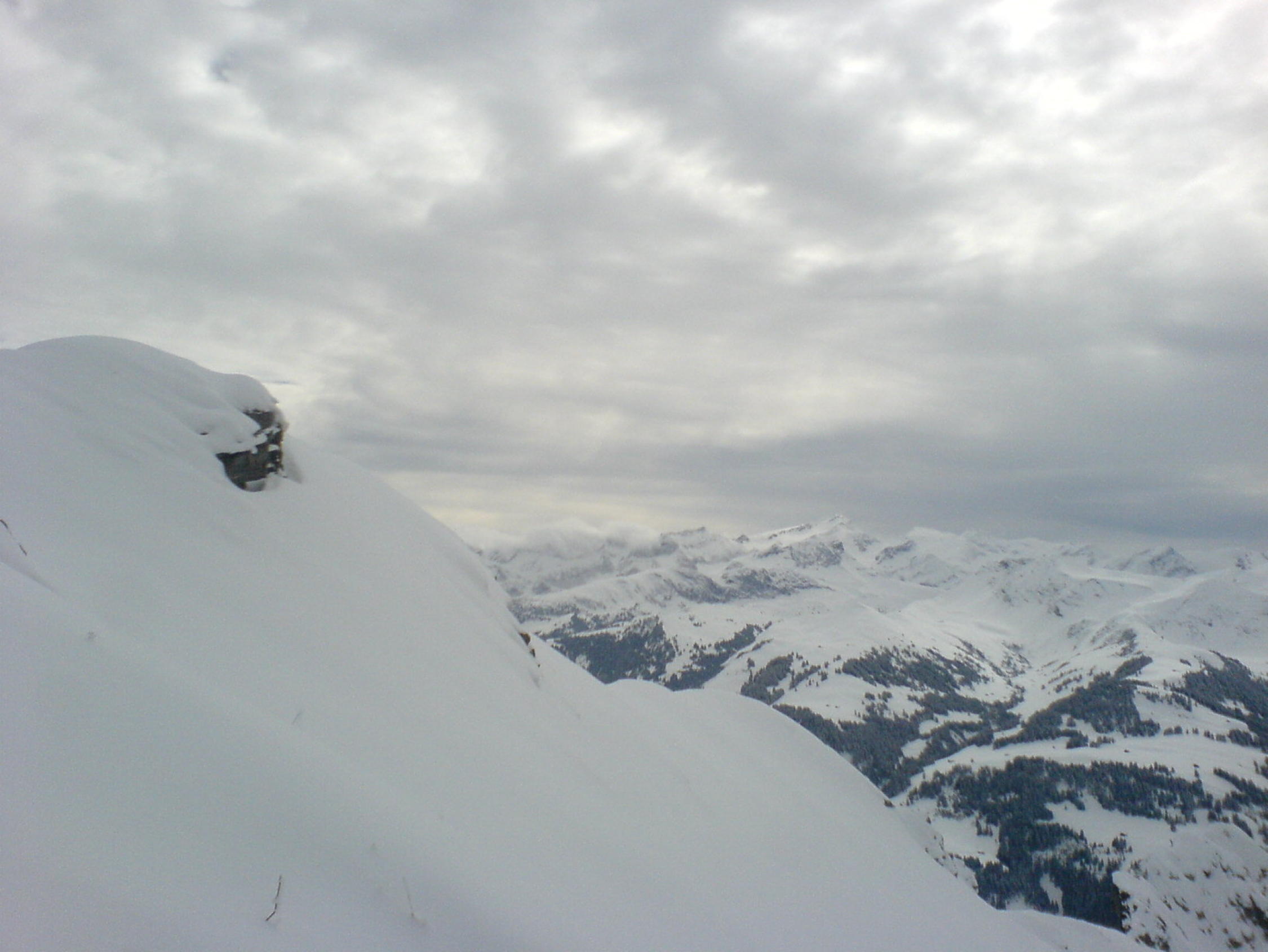 Abfahrt: Powder-Genuss vom Feinsten, in den flacheren Abschnitten fast zu viel Neuschnee! Unterhalb 1400m zunehmend pappig.