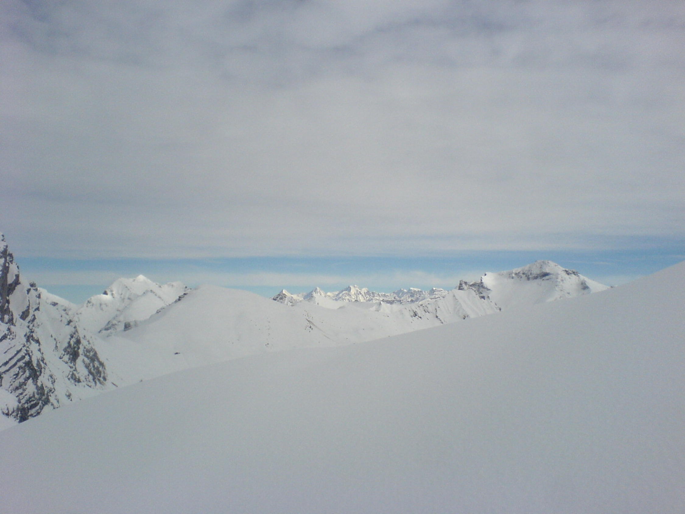Wummgeräusch bei der Querung ins Höuw-Eggli. Sonst diverse Lockerschneerutsche in allen Expositionen, auf den Geröllhängen von Breitgand direkt auf der Saharastaubschicht abgegangen.