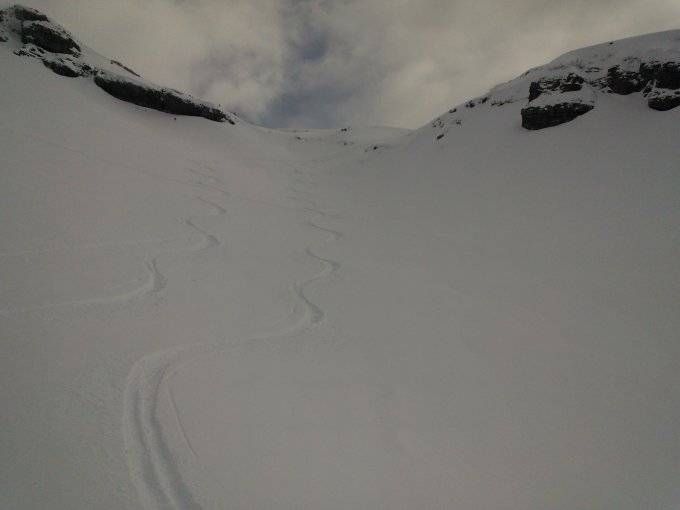 Heute sah ich insgesamt nur 5 Tourengänger am Mutteri, und ich war der zweite bei der Abfahrt. Vieeeeel Platz! Redertengrat wurde auch gemacht, und auch am Fluebrig sah ich eine Spur.