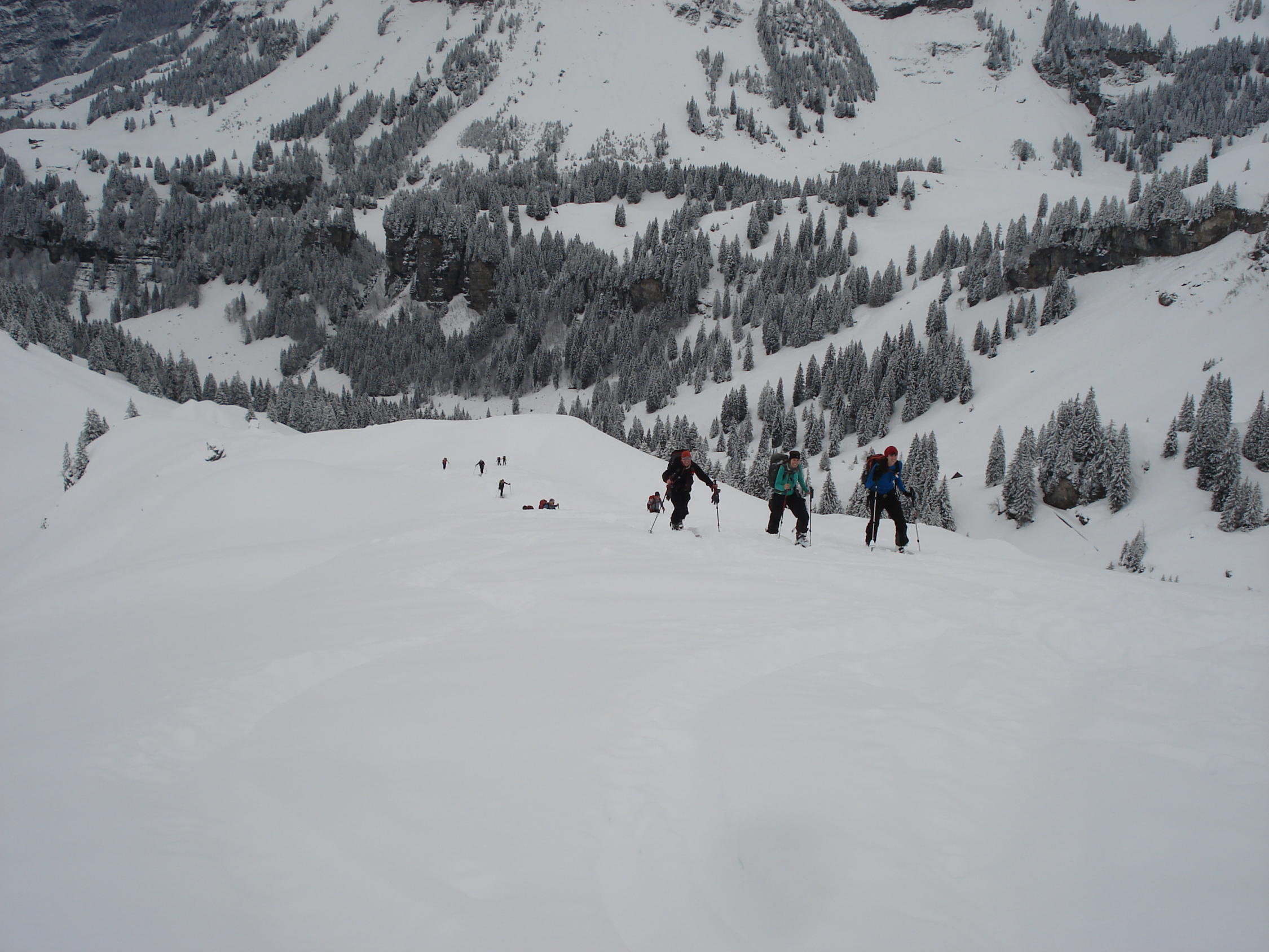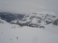 Start am 7.15 Uhr im Sahli bei - 3° Grad mit grauen Aussichten ,Pulverschnee 10-40 Zentimeter vom besten.Wind heute auch wieder einmal ok.Sicht für Abfahrt nicht so gut.