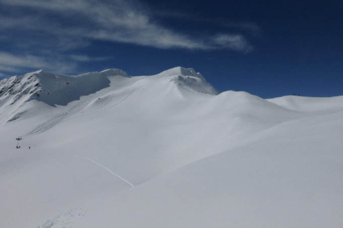 Pulver bis zur genüge! Zum Rottelligrat, Auf den Stöcken und zur Rotondohütte wurde auch gespurt. ..Entschuldigung für die unregelmässige Aufstiegsspur, hatte im oberen Teil keine Sicht und musste im Blindflug zwischen den beiden Skistöcken das Gelände abtasten!