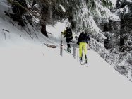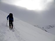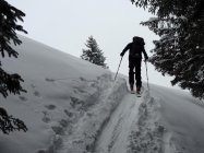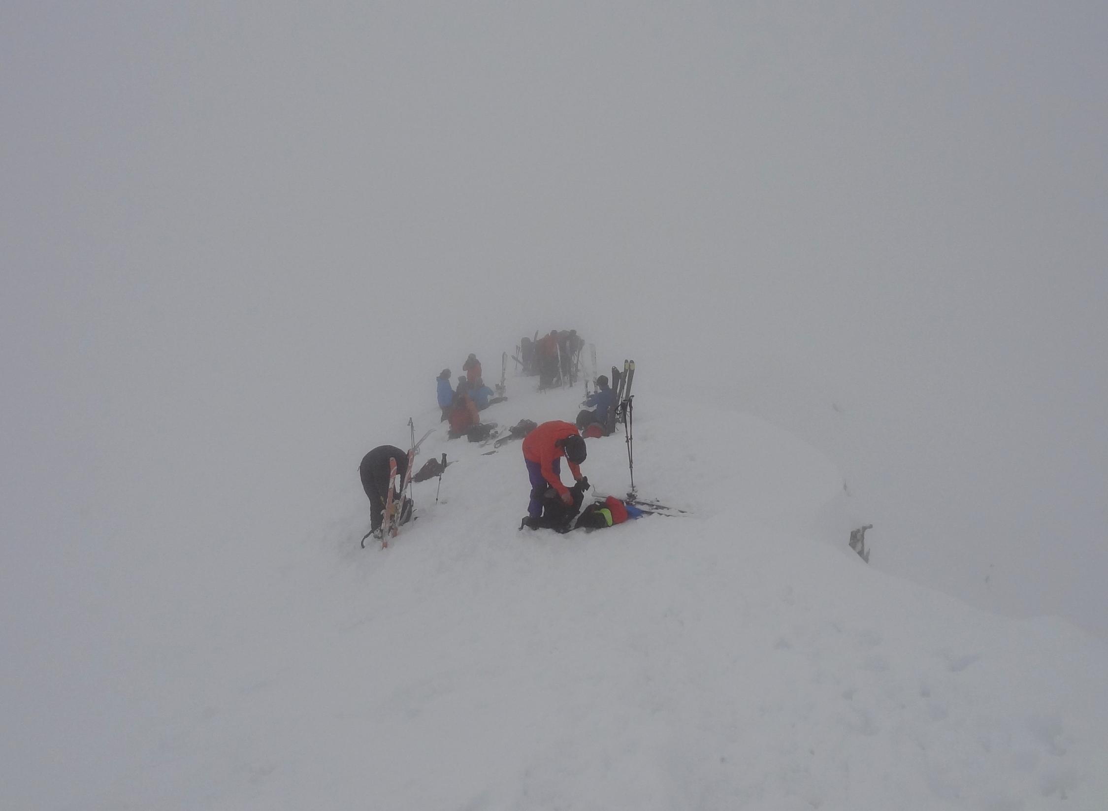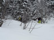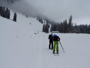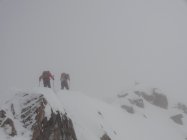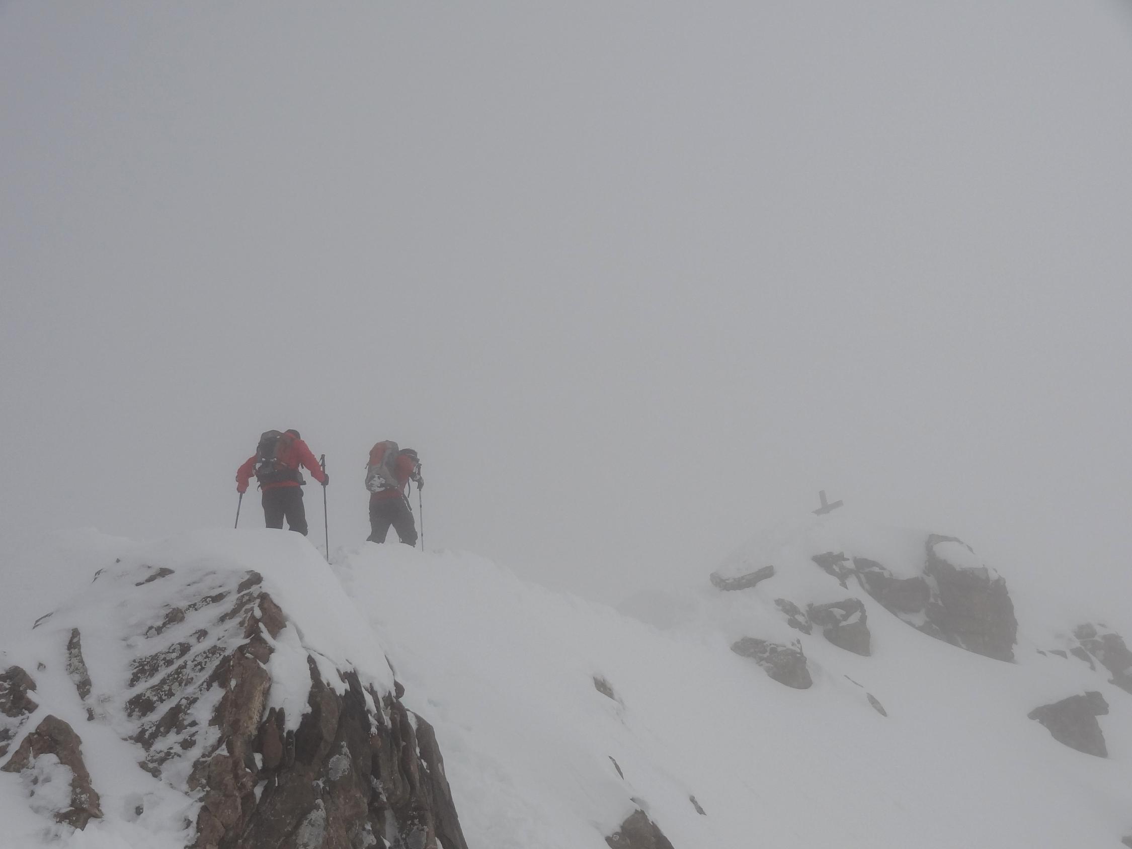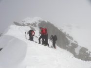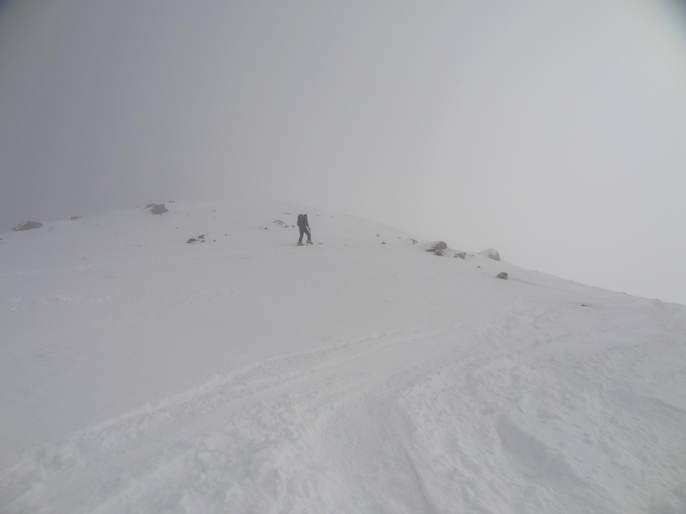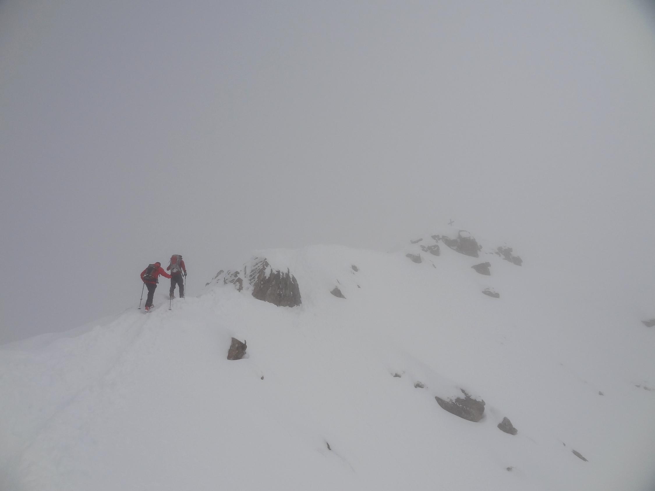 Der Neuschnee war durch die Wärme bereits am Morgen feucht. Erste 400 Hhm recht gut fahrbar. Bei der Abfahrt ab ca 1900 m unter den 10 cm Neuschnee ein schwacher Deckel der für schwierige Verhältnisse sorgte. Der Steibode wegen dem feuchter gewordenen Schnee ein wenig mühsam. Wäre das Wetter so gekommen gemäss Prognosen, wäre die ganze Sache halb so schlimm gewesen. Die erste 300 Hhm Abfahrt wurden im Blindflug genossen. Apropos Prognosen: Die Schweizer Meteorologen haben eine hohe Trefferquote, so sei ihnen dieses Faux-Pas für einmal verziehen.