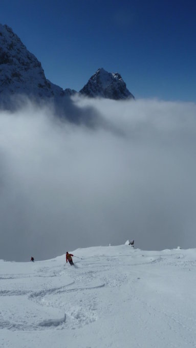 Bleibt gut aber nicht mehr lange weil der Pulverschnee vermutlch bald nass wird. Gestern waren bereits 20 Leute auf dem Gipfel und die schönsten Hänge sind bereits umgepflügt