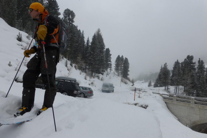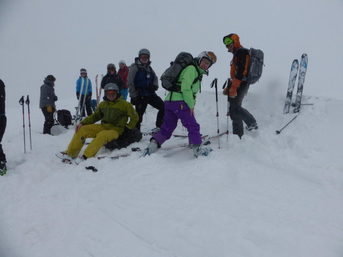 Gute Verhältnisse, Spur in Neuschnee auf tragender Unterfläche. Danke der vorderen Gruppe.