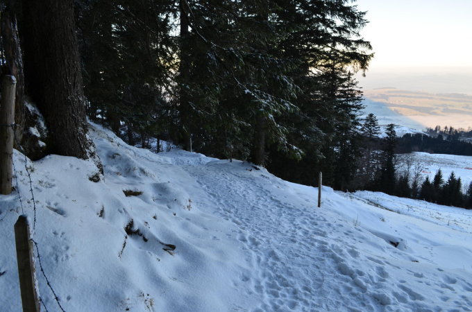 Ab Seebodenalp lag fester Schnee. Der gesamte Weg bereits sehr gut gespurt.