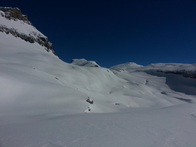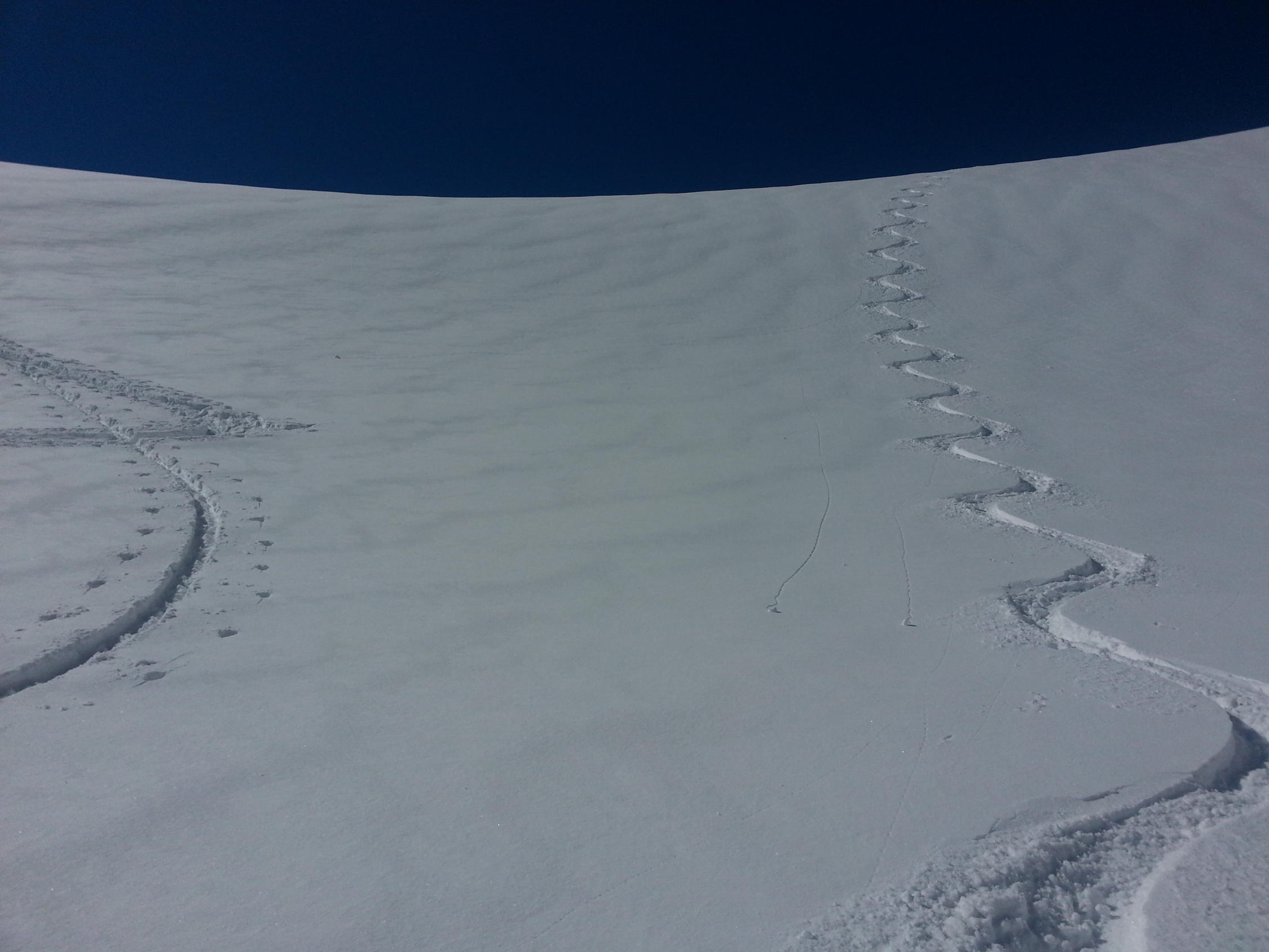Die Verhältnisse sind TOP. Der Wildstrubelgletscher ist prima zugeschneit.