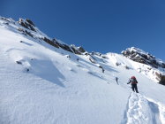 Aufstieg im Neuschnee von der Nacht auf den Donnerstag, gespurt von unbekannt, vor uns, herzlichen Dank.