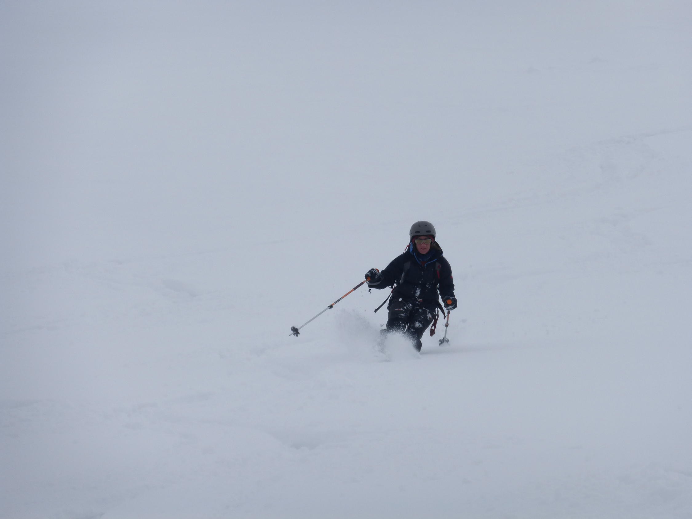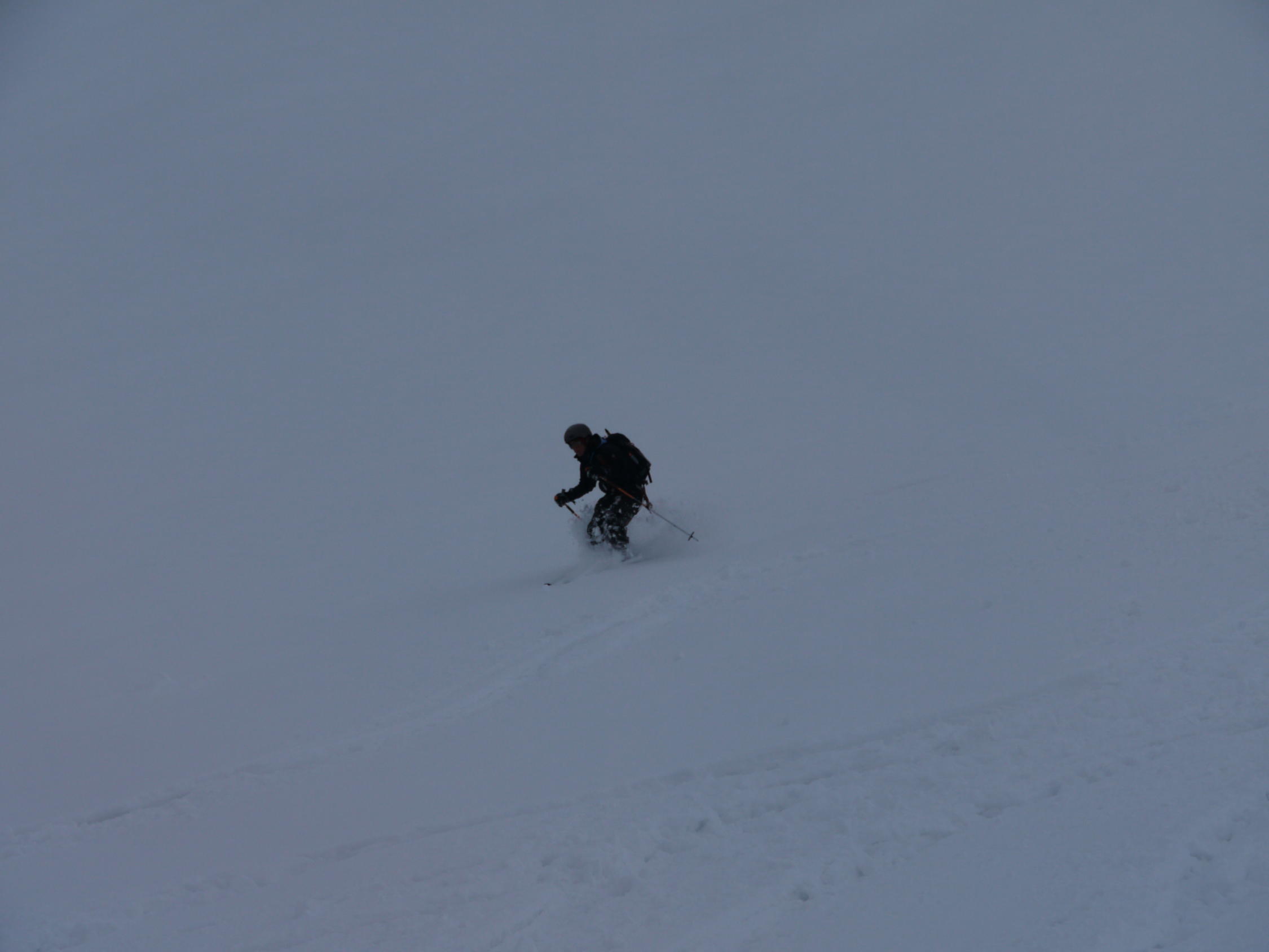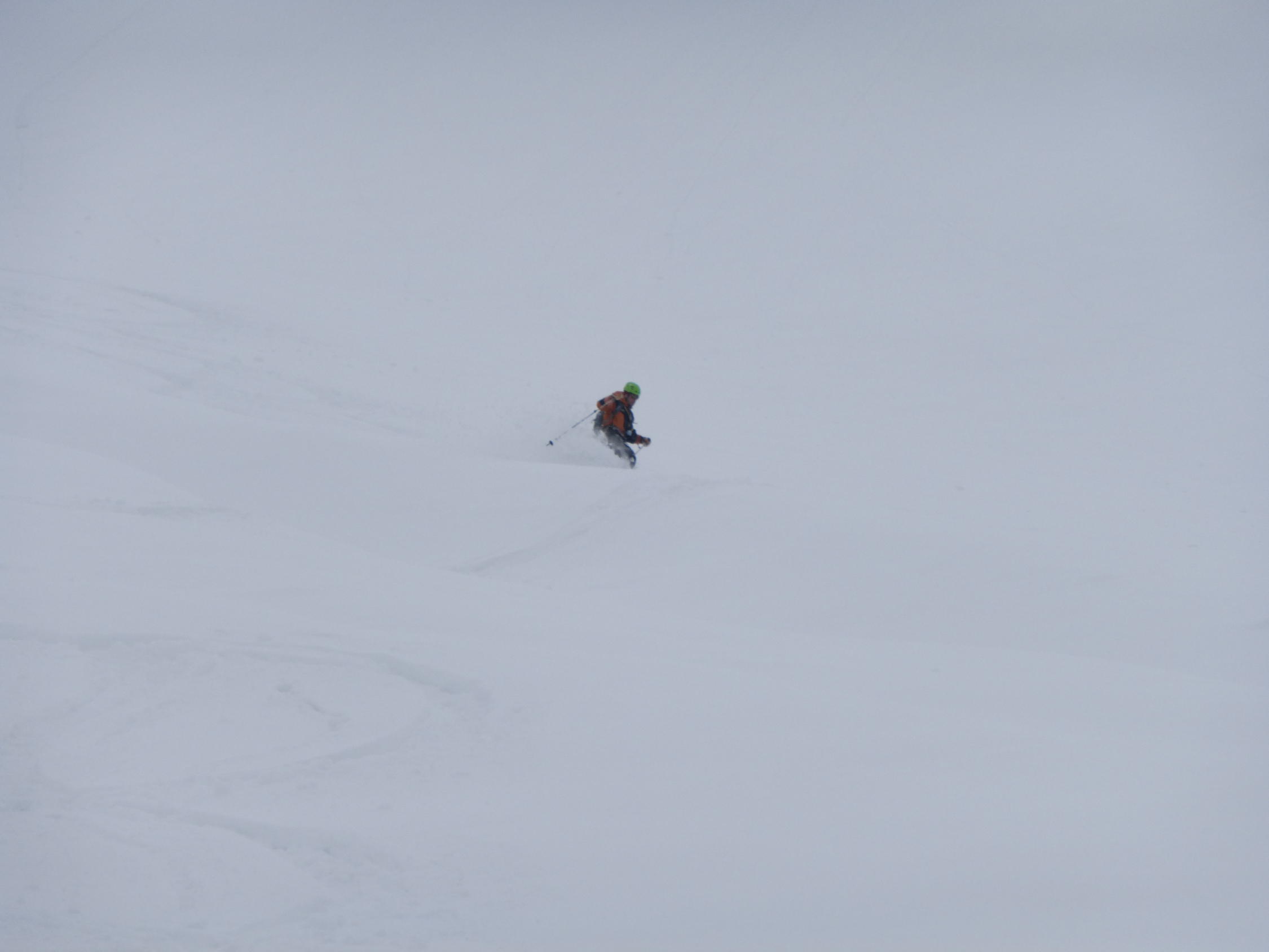 Abfahrt oberste Bogen vorsichtig wegen Steinen, dann super Pulver bis 2720.