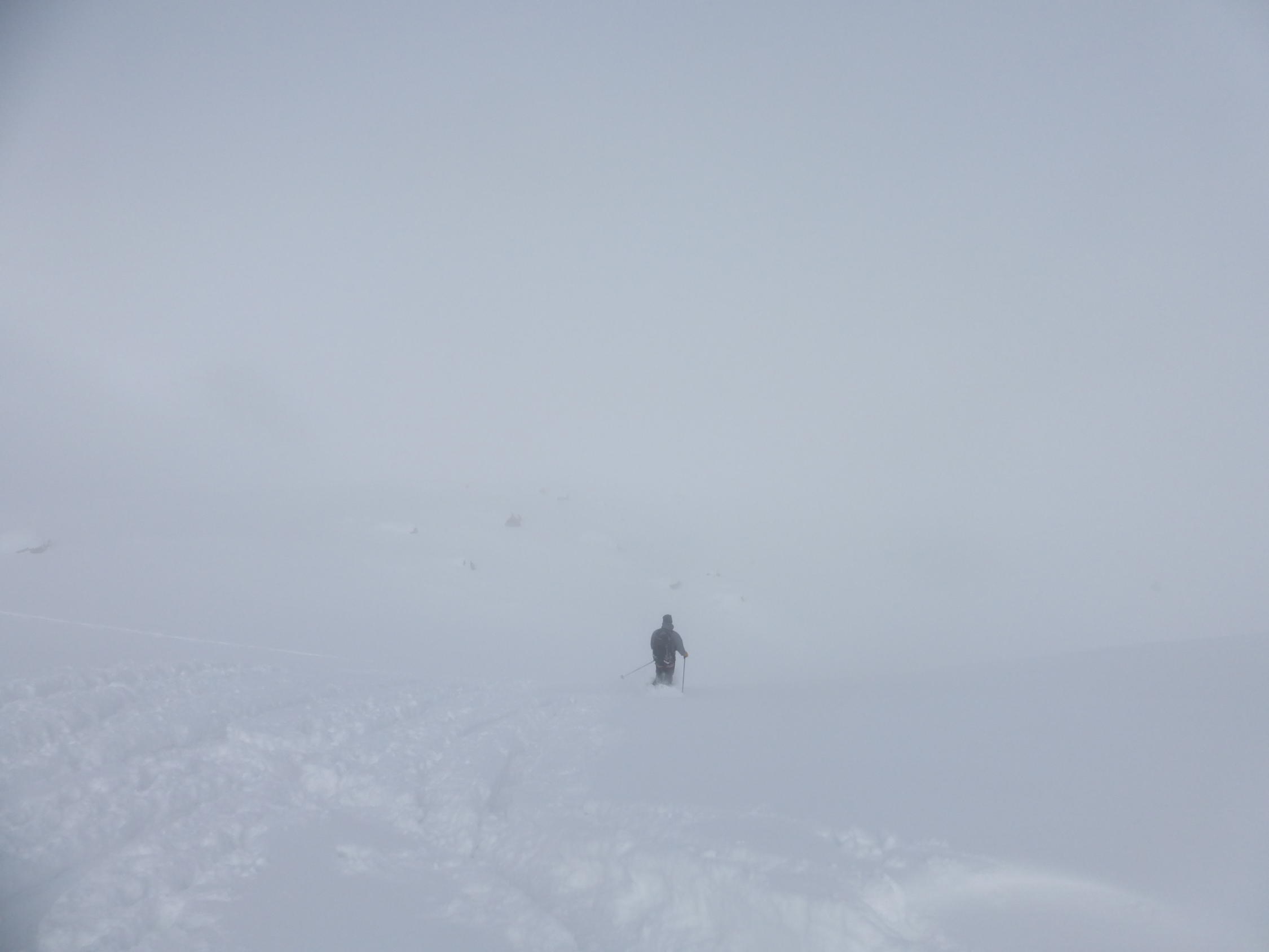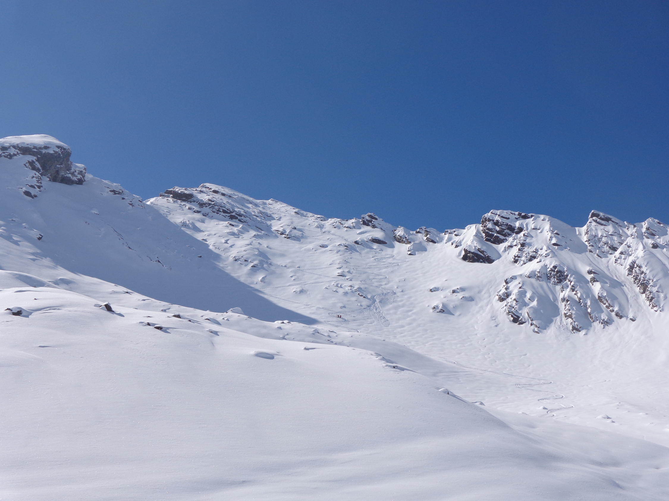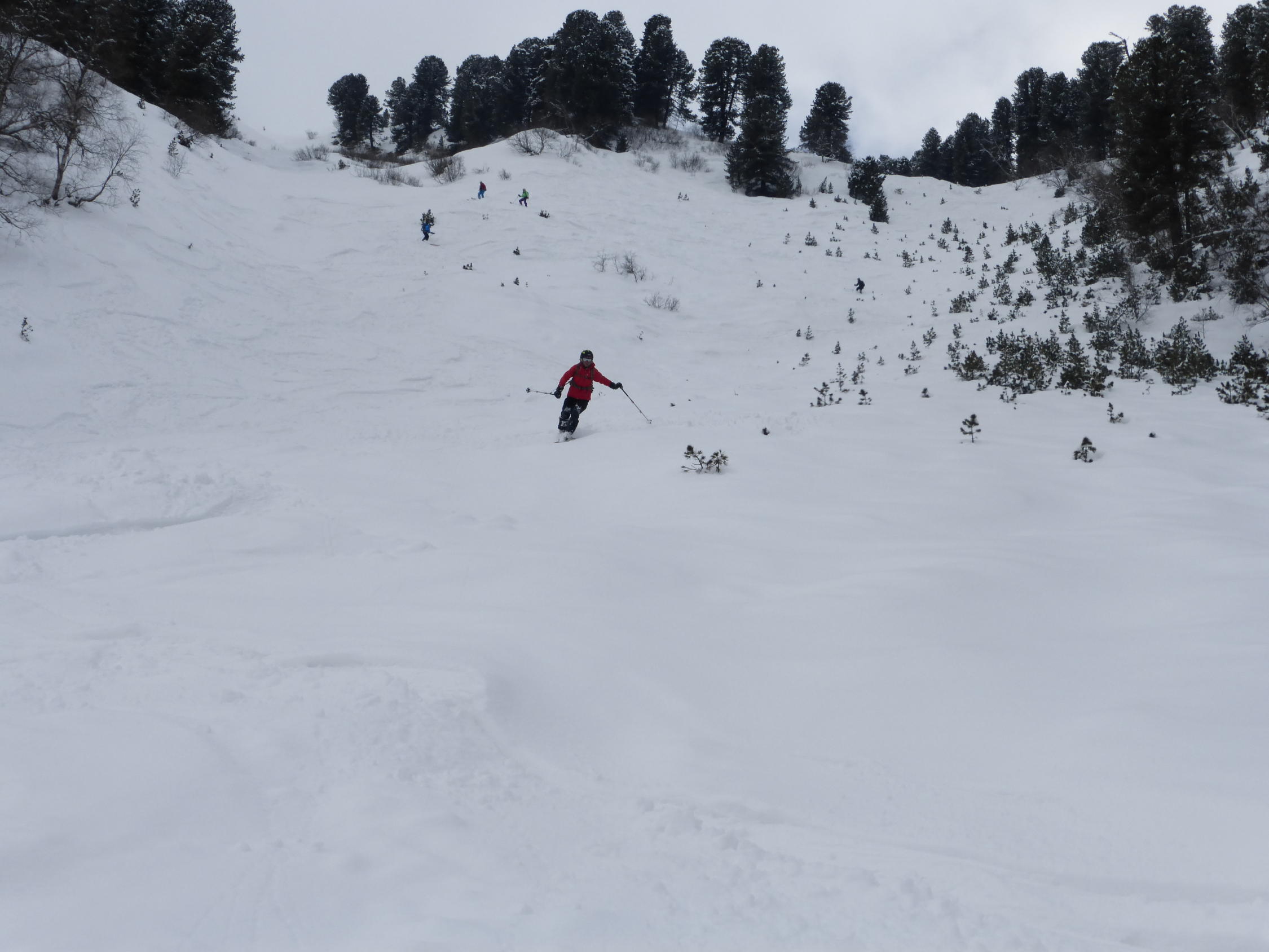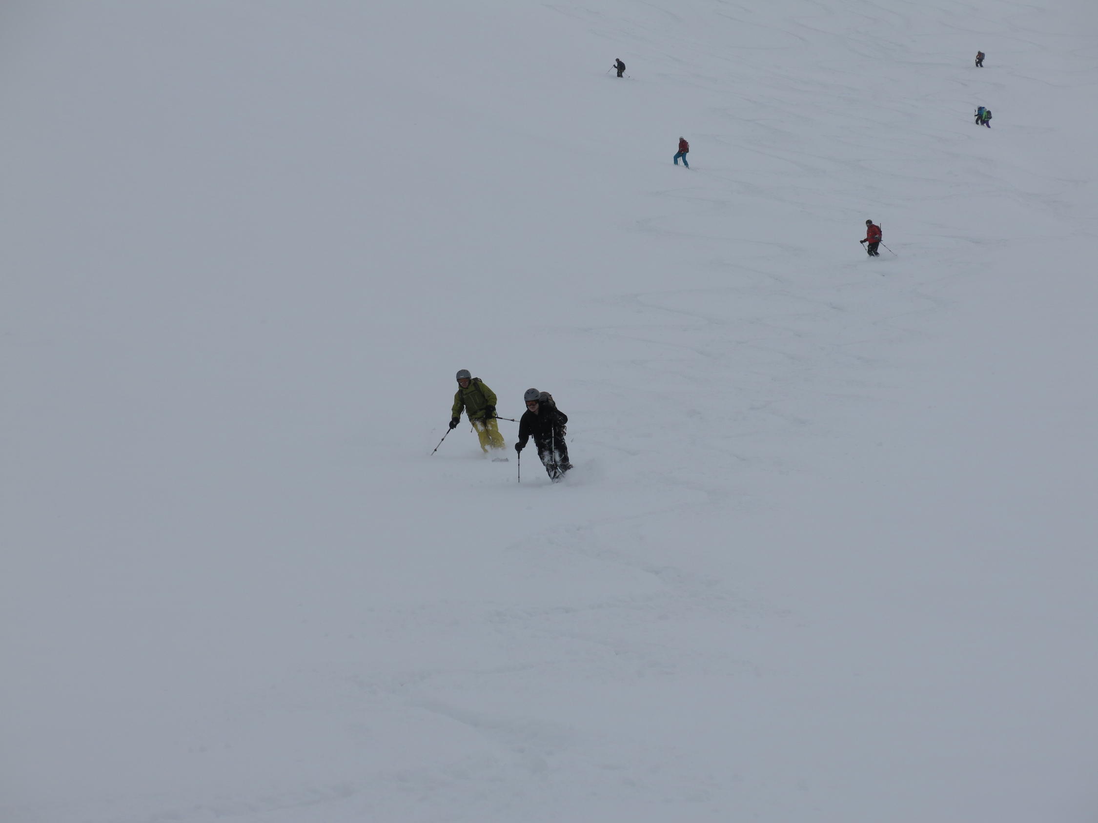 Abfahrt oberste Bogen vorsichtig wegen Steinen, dann super Pulver bis 2720.