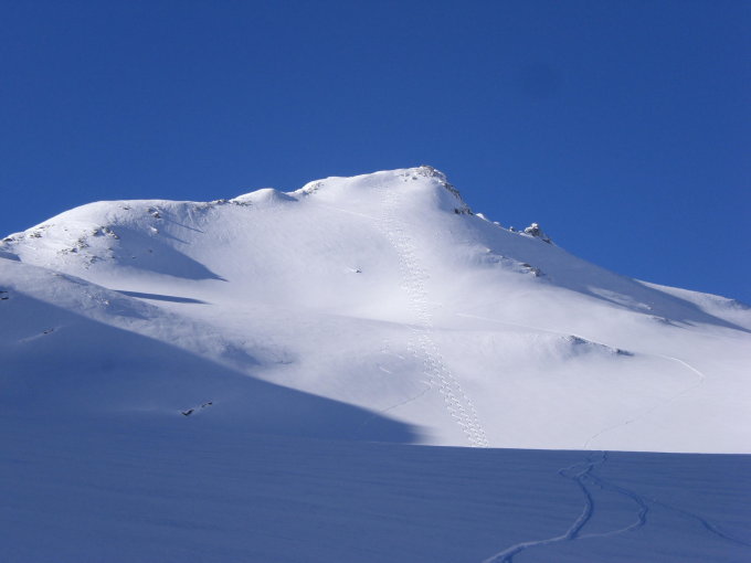 Top. Abfahrt auf den Fanellgletscher super. Schwerer Pulver. Vorne runter nach Hinterrhein dann noch schwererer Pulver, windgepresster Schnee und Sulz.