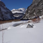 Durchs gasterntal(12.00 Uhr) bereits in T-Shirtwetter ,Schnee klebrig,geht ohne Felle zu laufen,jetzt mit Trasse sicher besser.Abfahrt bis Kaserne Kandersteg bei Sunbühlbahn.
