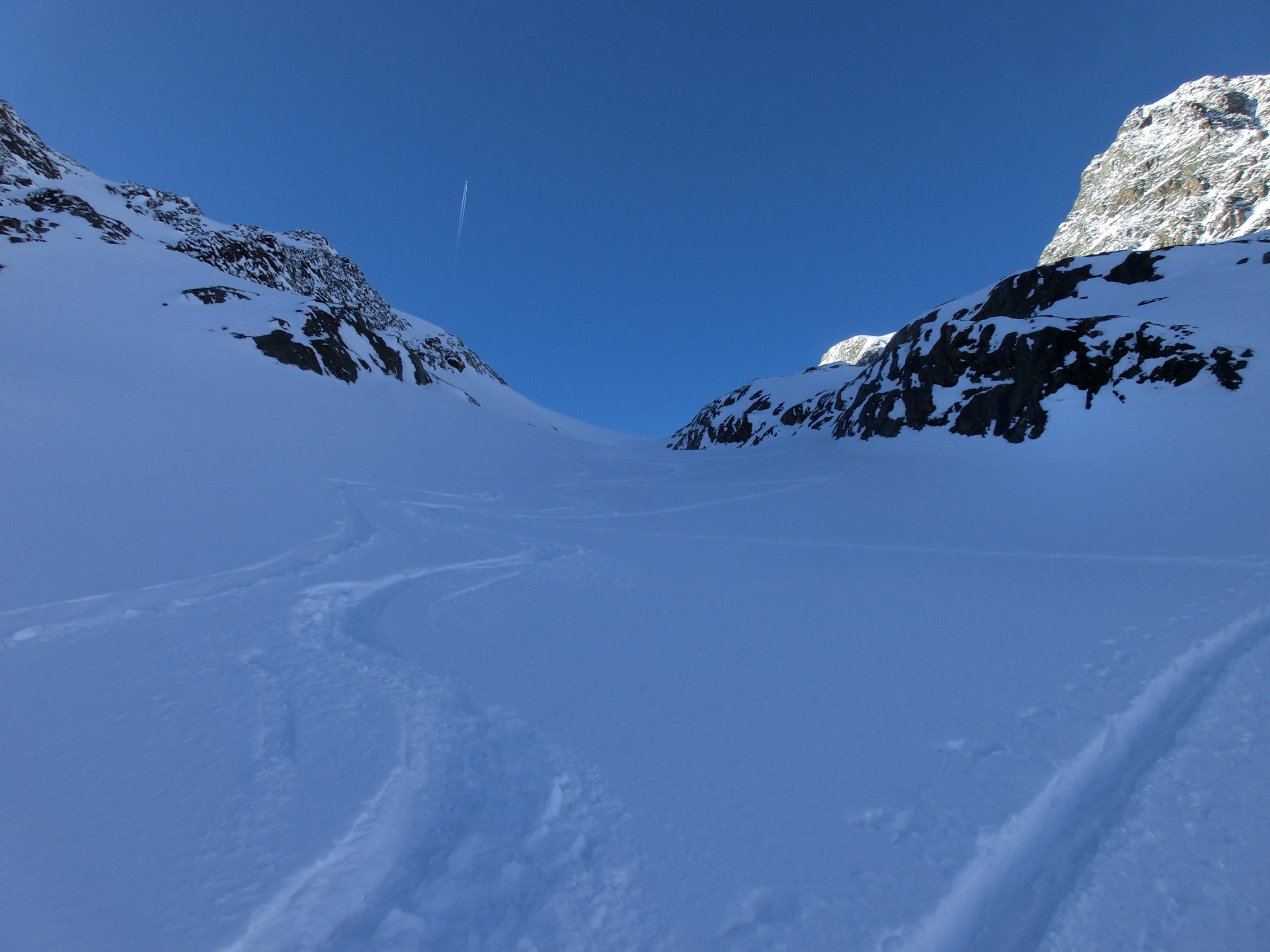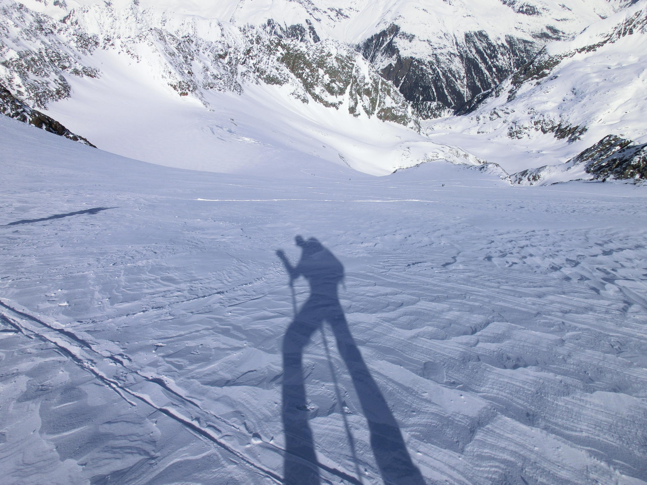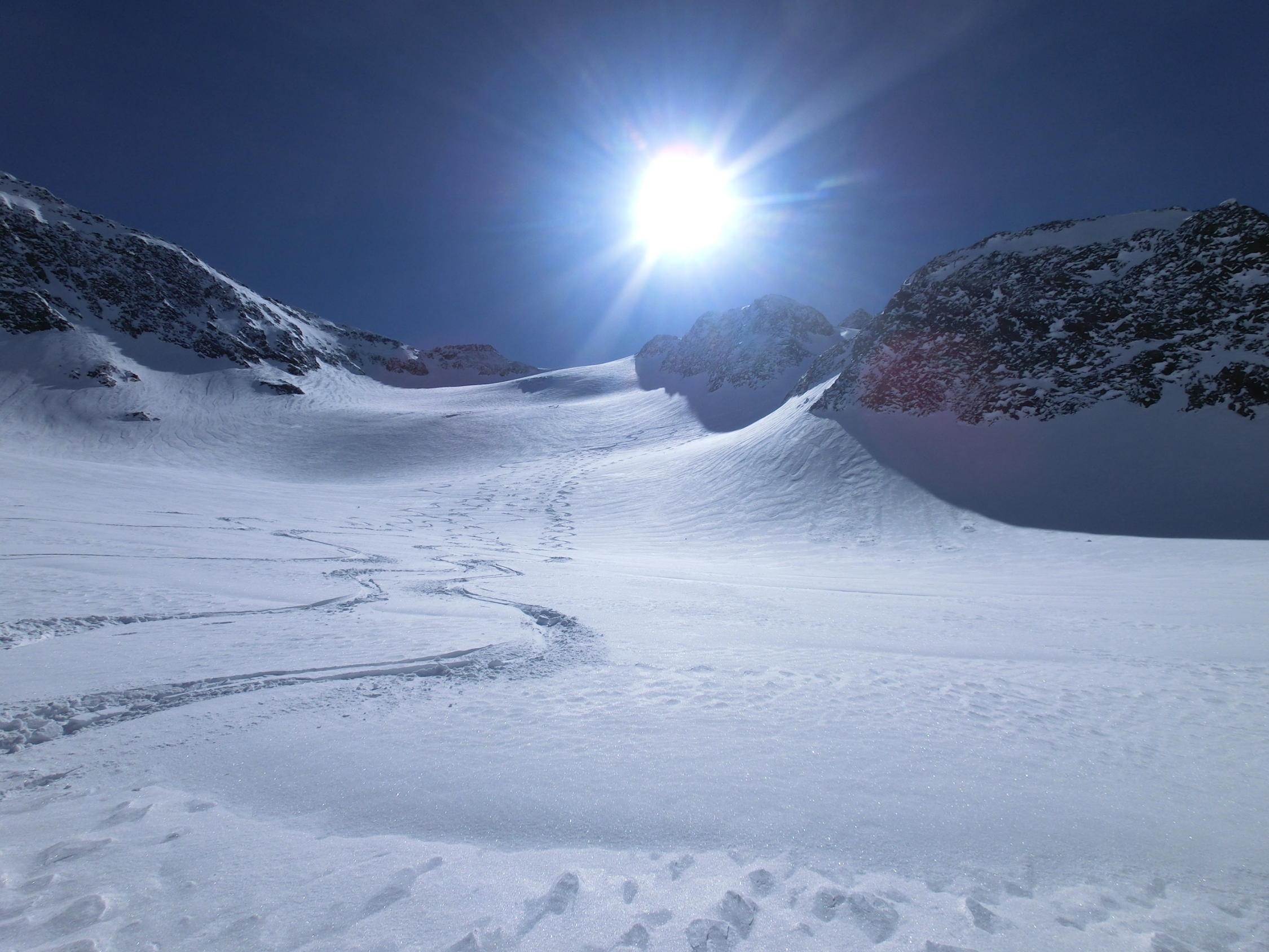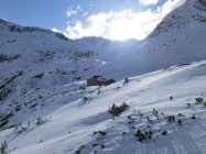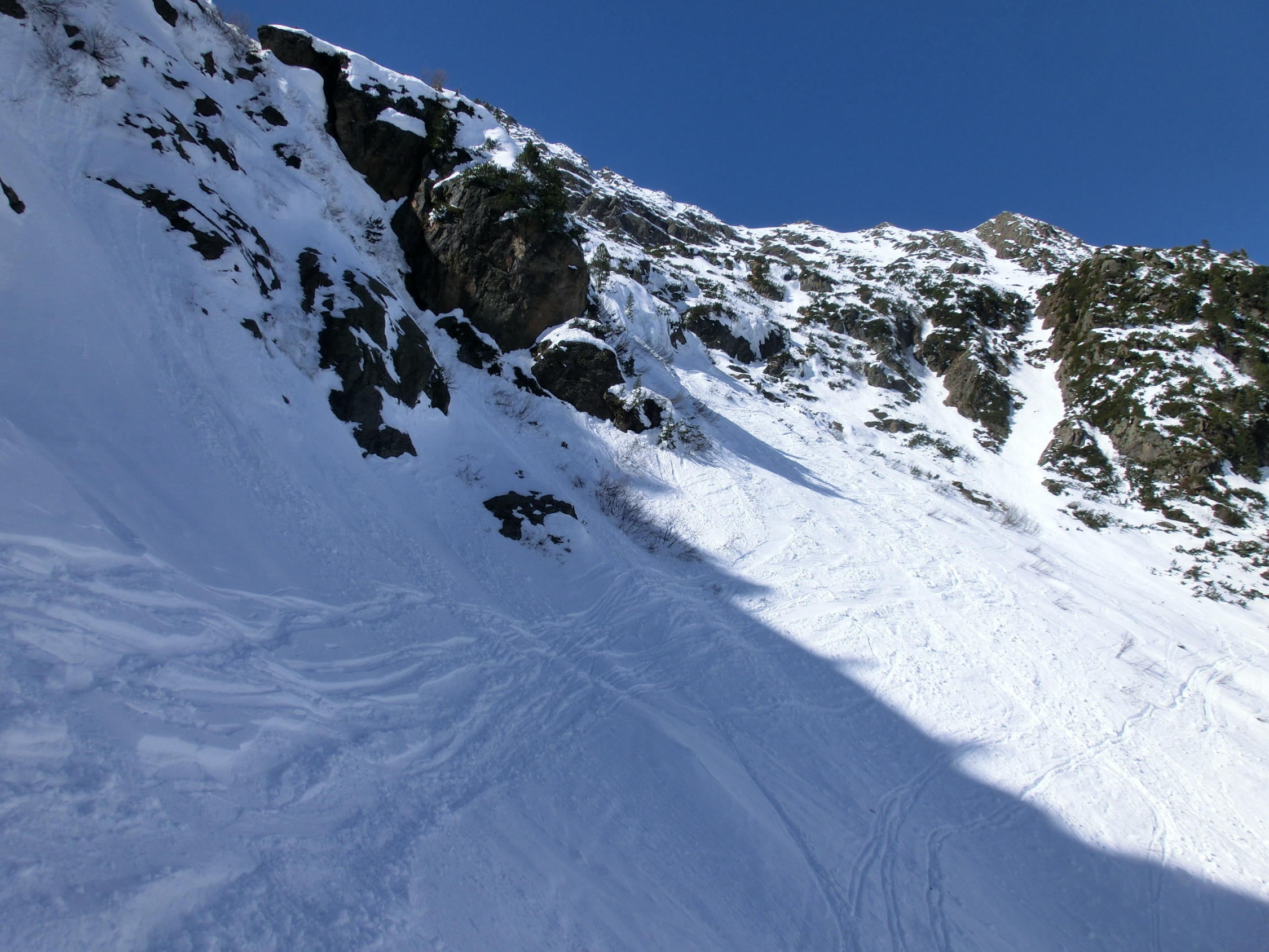 in sonnigen Hängen einzelne Lawinenabgänge