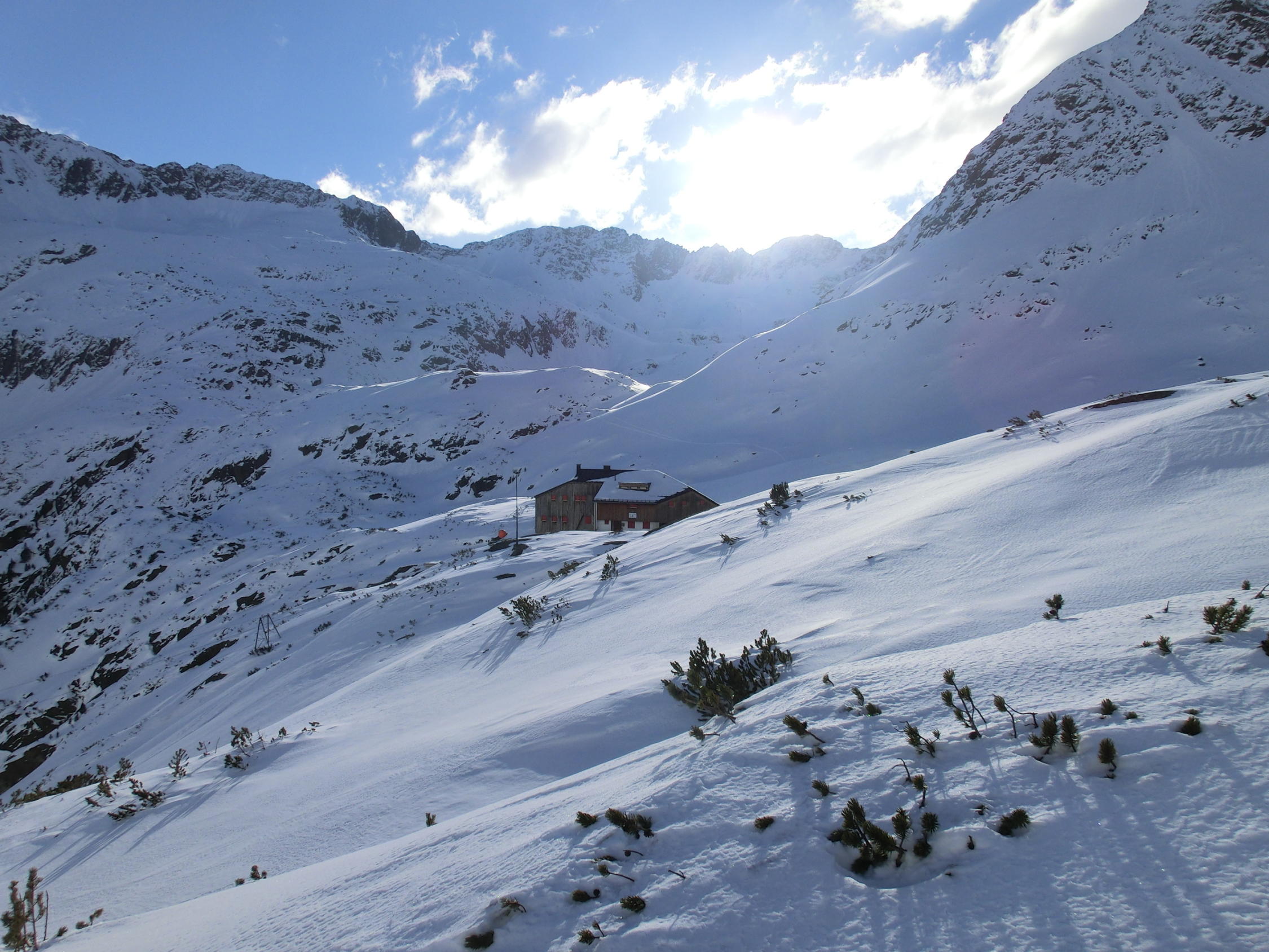 super! Schnee vom Parkplatz weg; eigentlich die meisten Hänge in der Abfahrt Traumpulver! nur oben windgepresst und auch starker Wind; Steilstufen waren alle ohne Problem zu fahren;