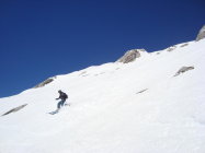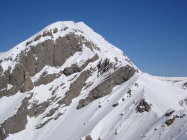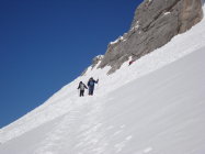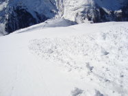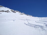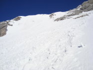 In den letzten Tagen ist aus der steilen Gipfelflanke einiges heruntergekommen . Heute war nichts zu beobachten. Das was noch oben ist, scheint mir gut verfestigt.