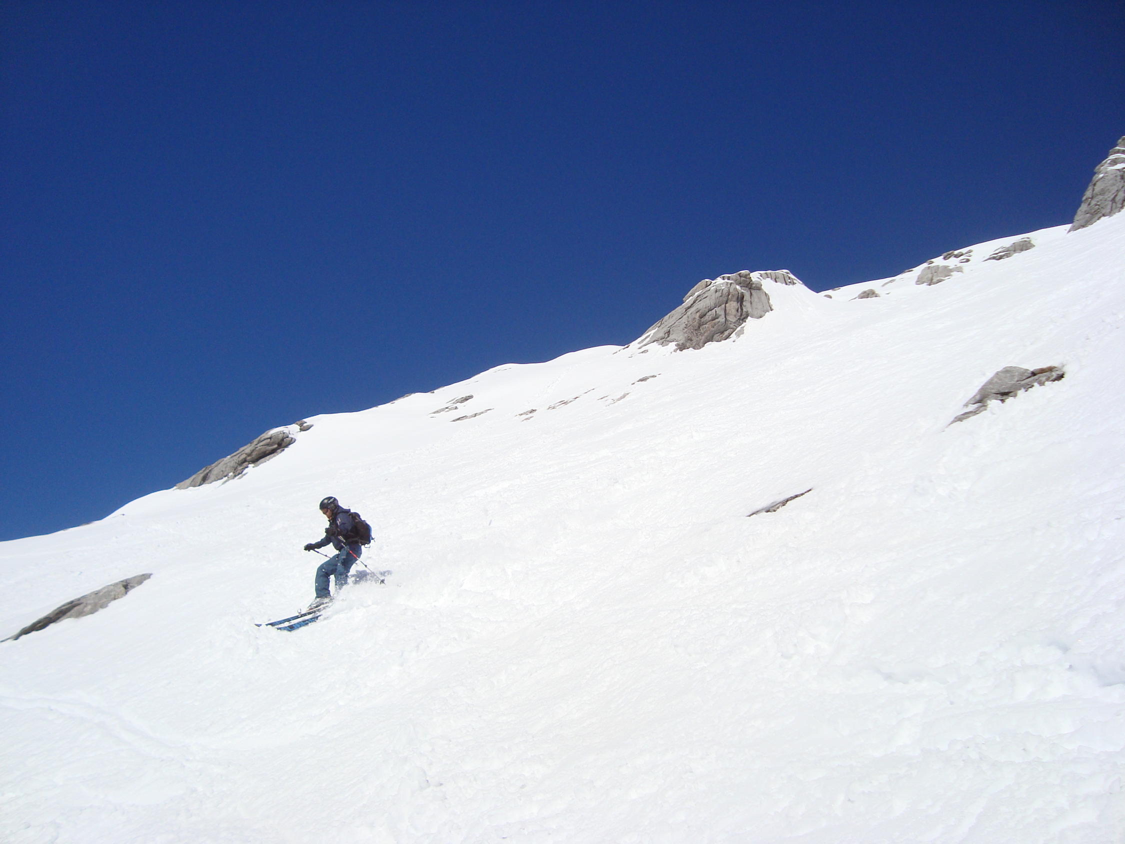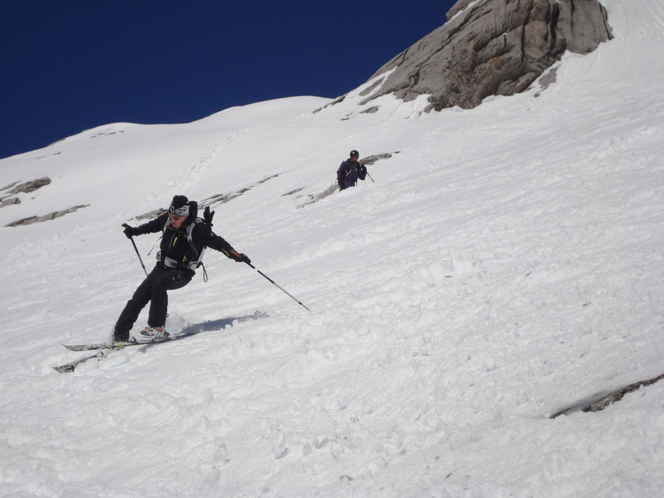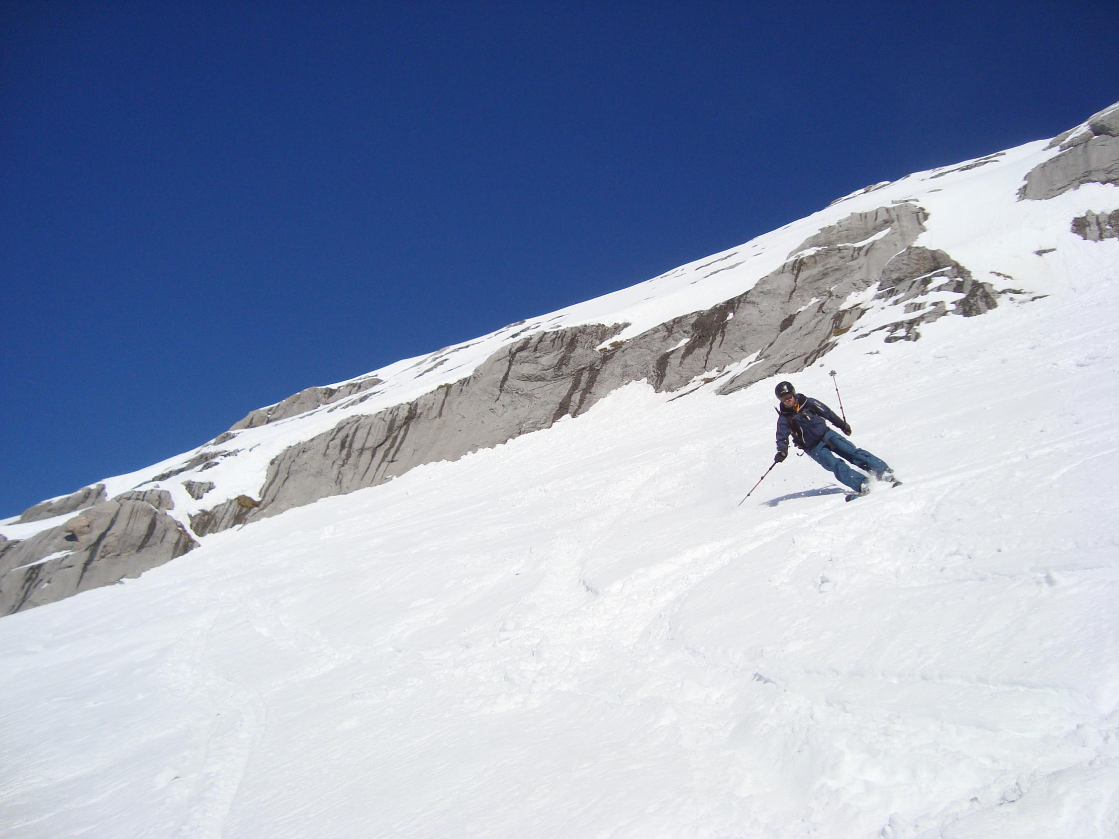 Die Abfahrtsbedingungen waren wider Erwarten sensationell! Hammerfrühjahrssulz vom Gipfel bis Höhe Fürenalp! Auch der Sturm hatte sich etwas gelegt.