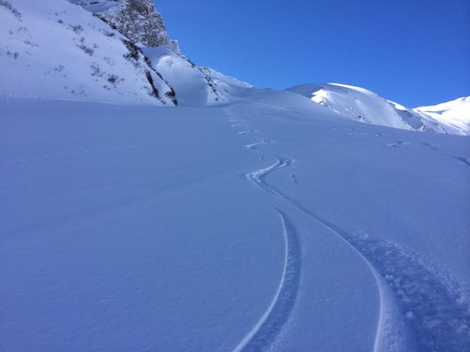 Gute Schneeverhältnisse zumindest am Morgen. Zum Teil leichter Windharst in gewissen Bereichen jedoch gut fahrbar. Starke Bise im Gipfelbereich dafür sehr gute Fernsicht. Zugewehte Aufstiegsspur an exponierten stellen.