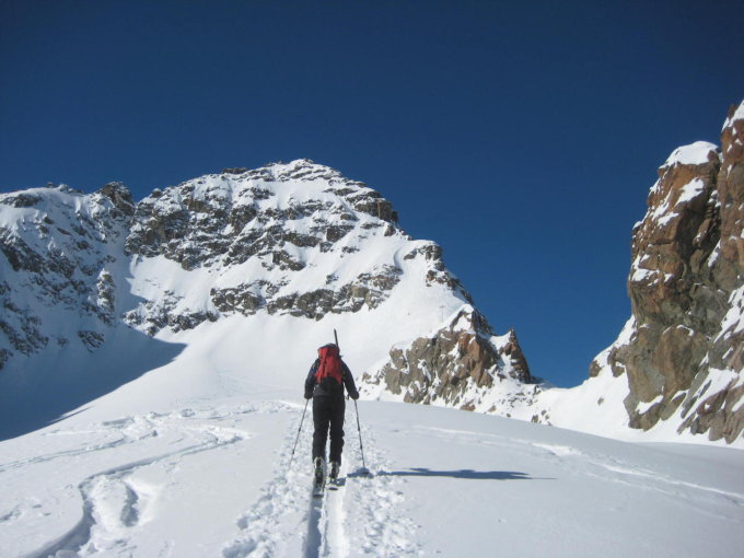 Traumverhältnisse: Wetter und Pulverschnee, Fussspur ab Skidepot sehr gut. Der Kesch Pitschen als Zusatztour ebenso traumhaft.