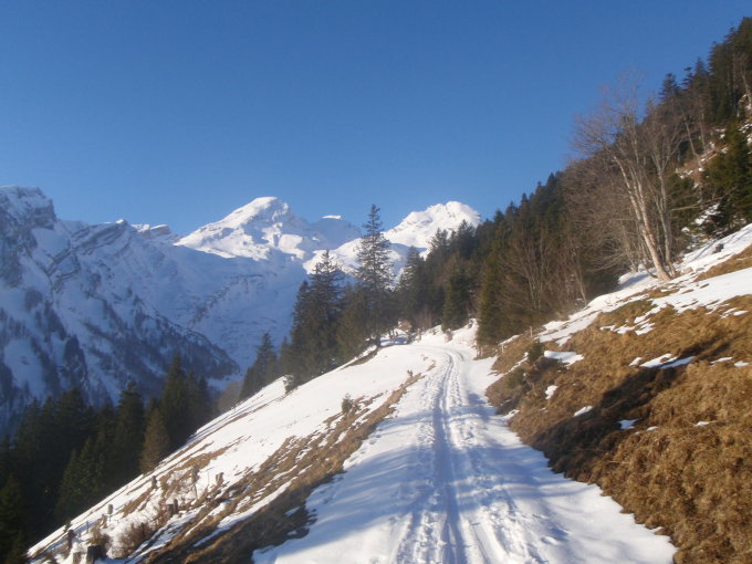 Der Schnee ist recht unterschiedlich. Beste Verhältnisse haben wir bei der Abfahrt vom Chrummenstein vorgefunden. Unten raus eher Wasserski :-)