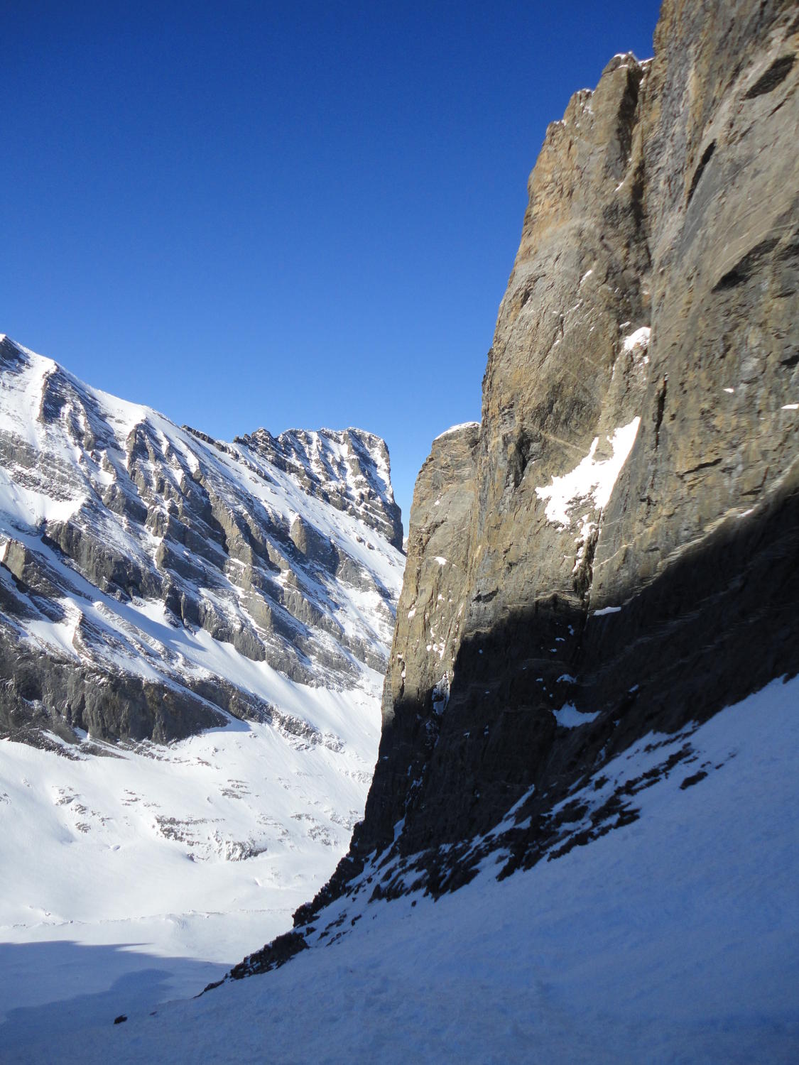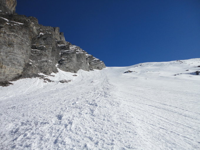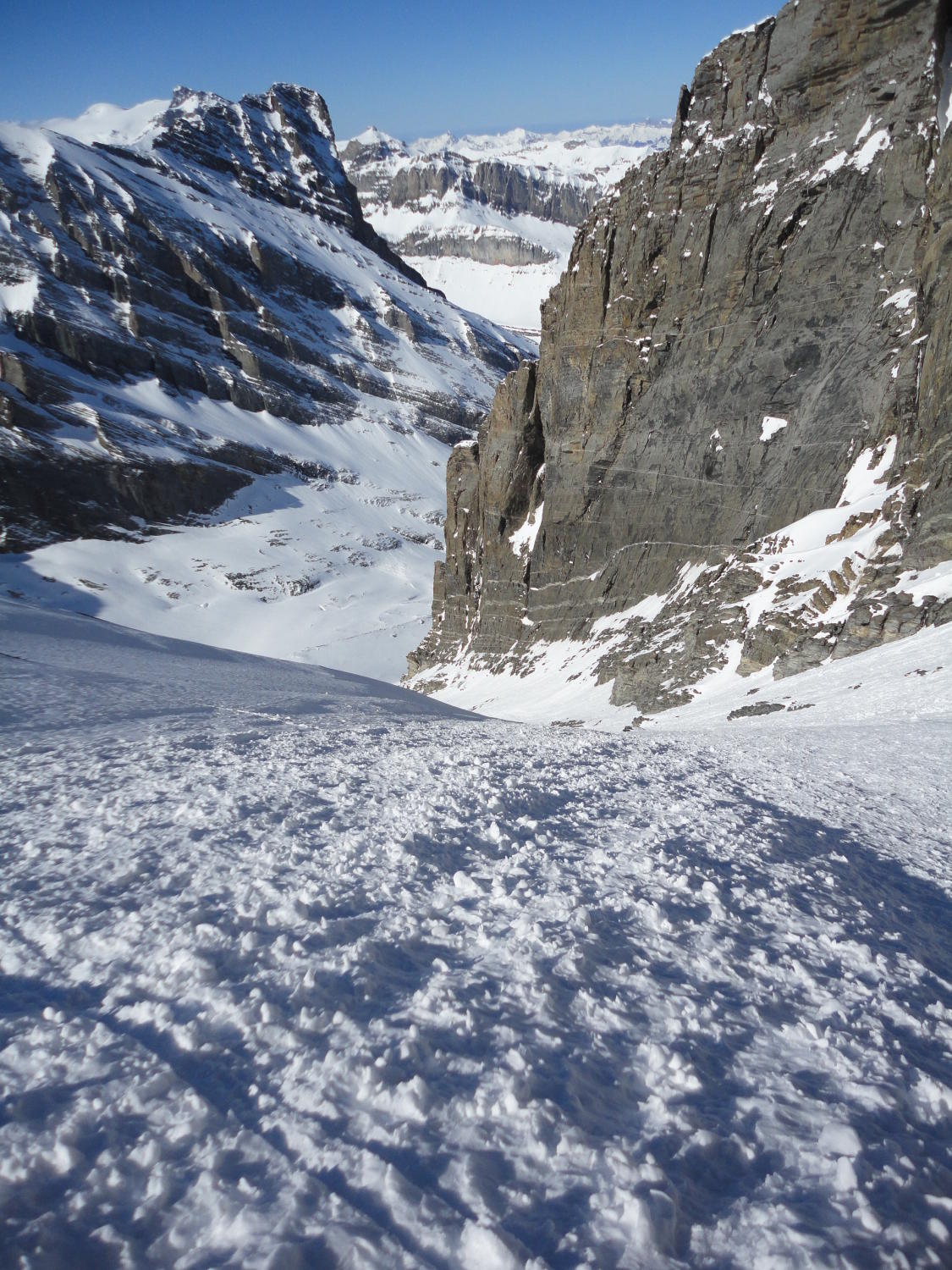 Im Couli war alter Lawinenschnee (Lockerschnee) aber gerade das machtes es super zum Aufsteigen.